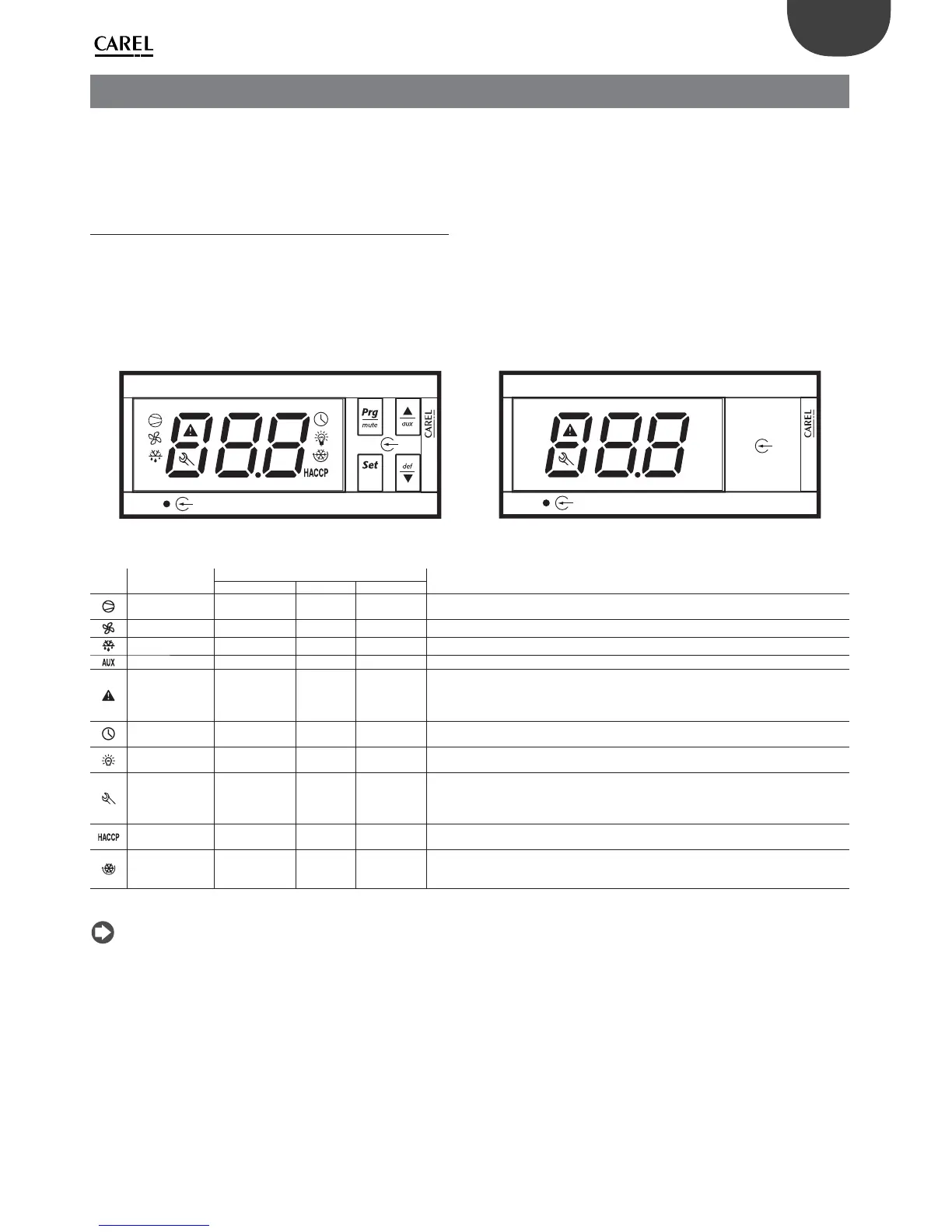 Flashes in the event of alarms during normal operation (e.g. high/low temperature) or alarms