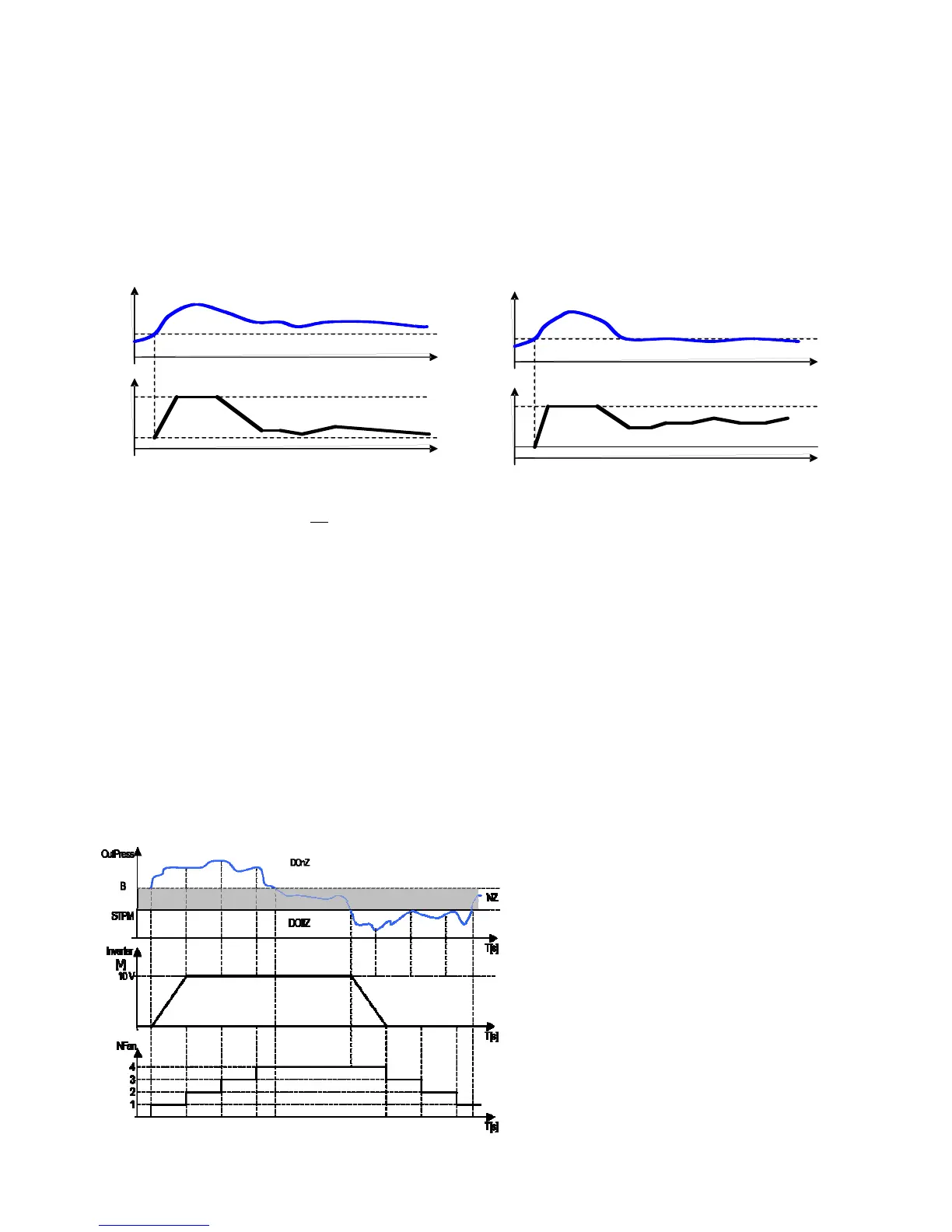 This control requires the setting of inverter set point, the inverter pressure differential for “dead band” control (parameter r21) and the “inverter ramp up time”