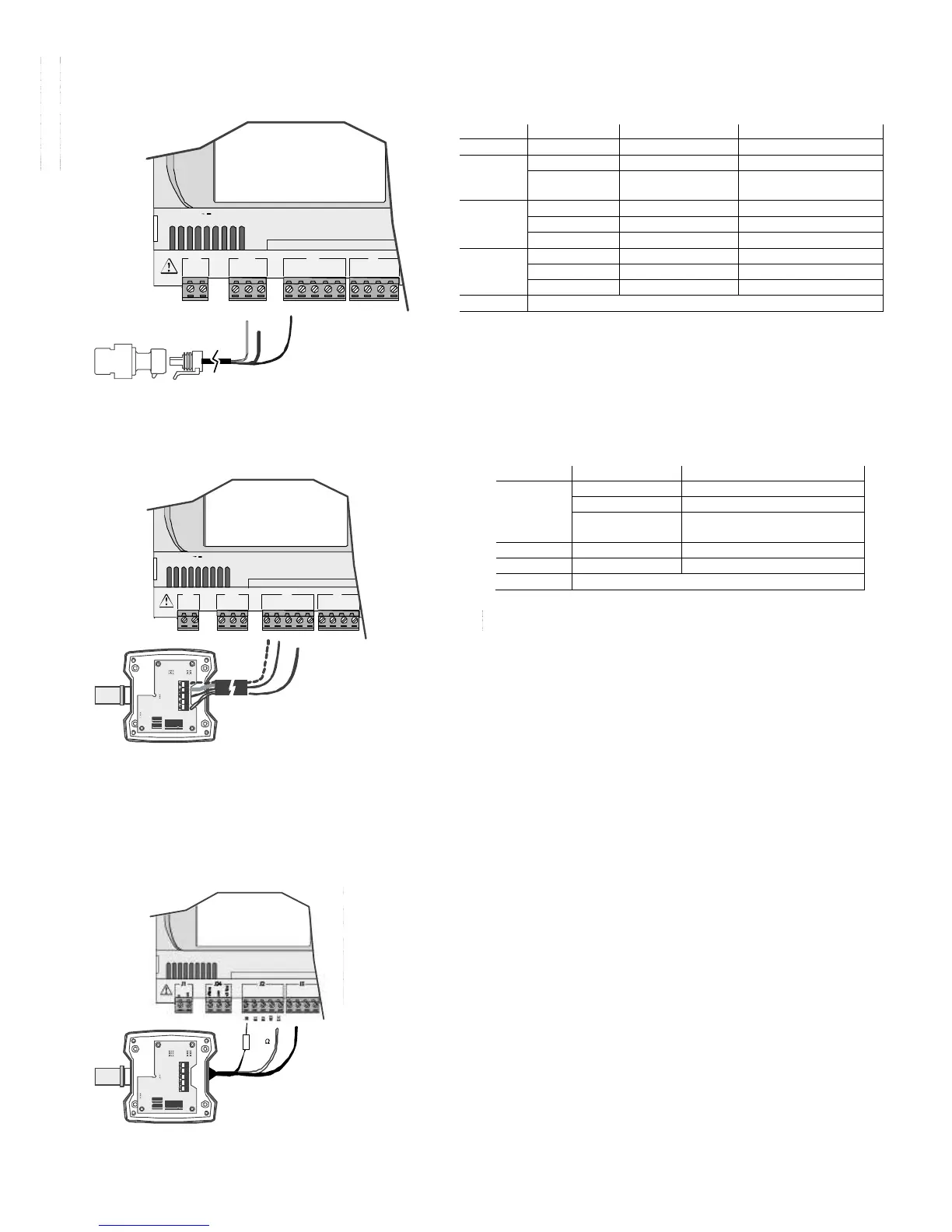 On both controllers, to read this type of input simply set it as 0-5 V at an application level and then fit a 20.5KΩ, 1/4W, 1% resistor in series with terminal Bn, as shown
