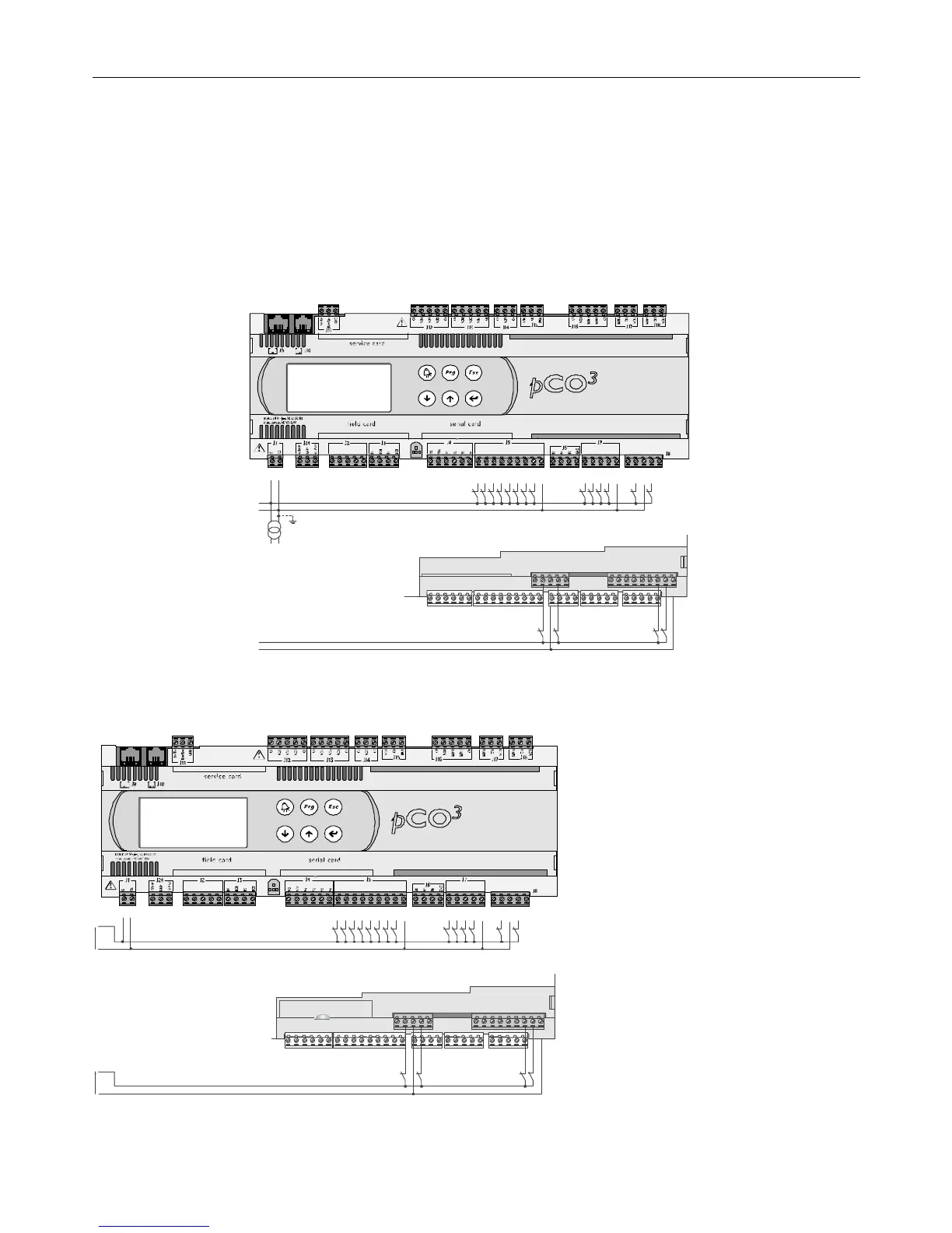 The following figure represents one of the most common diagrams for connecting the 24 Vac digital inputs, for a pCO