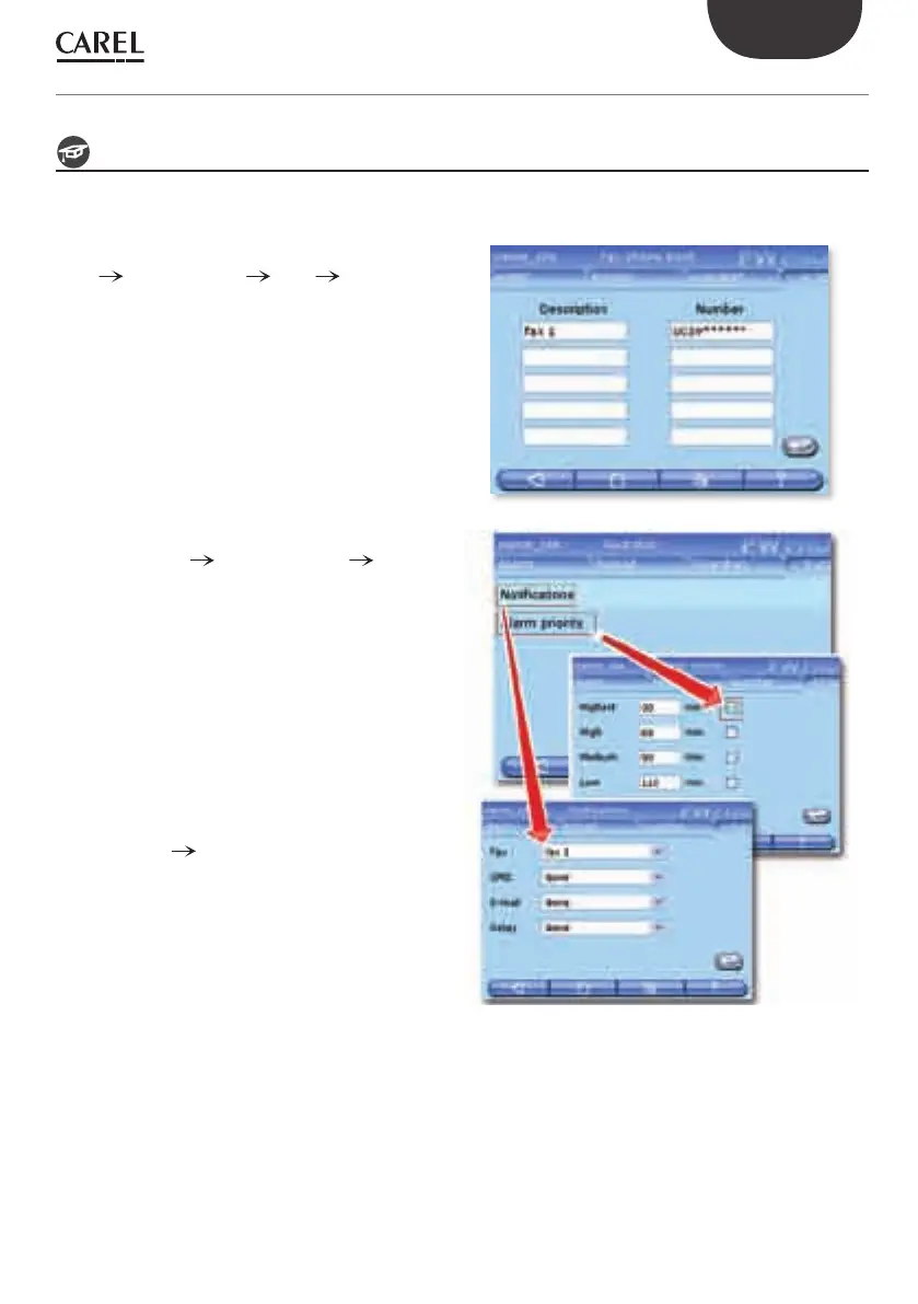 Below is a description of how to send a fax to a certain number if a highest priority alarm is activated on a fi eld
