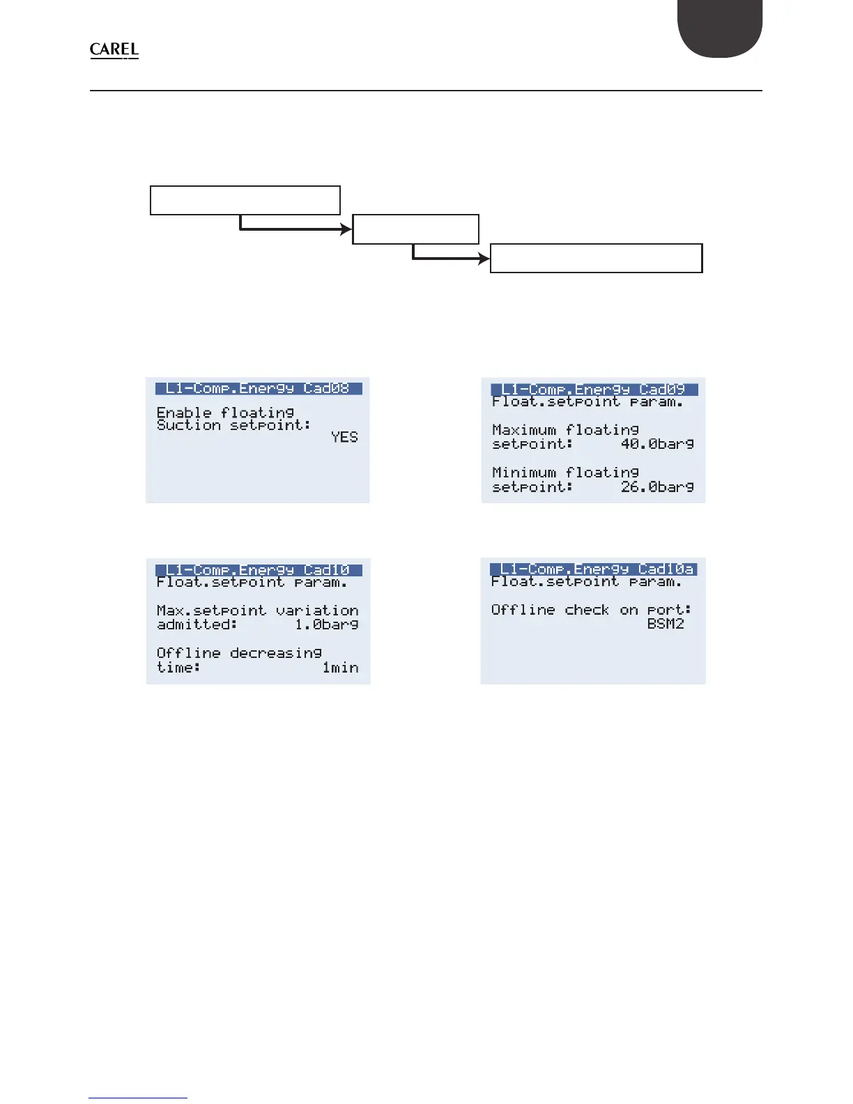 Once having entered the confi guration menu, screen Cad08 is used to enable the Floating suction function.
