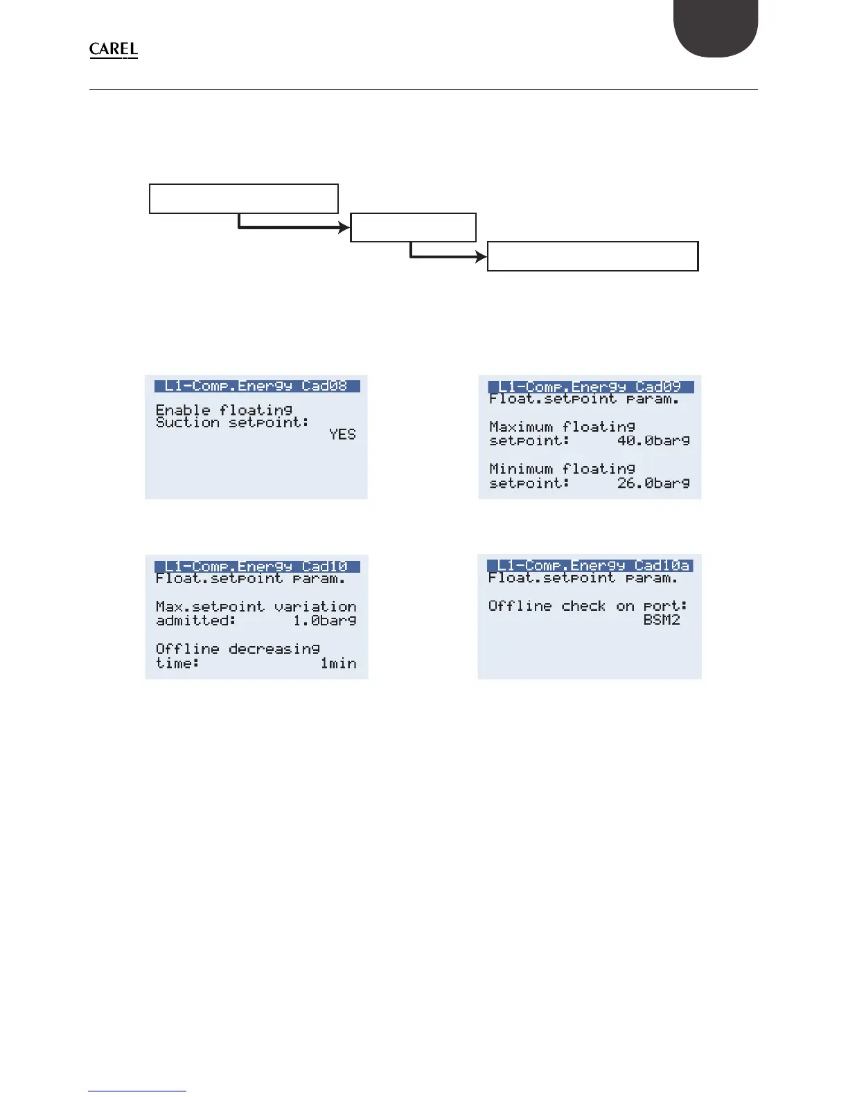 Le schermate Cad09 e Cad10 sono utilizzate per specifi care i parametri di funzionamento: il setpoint