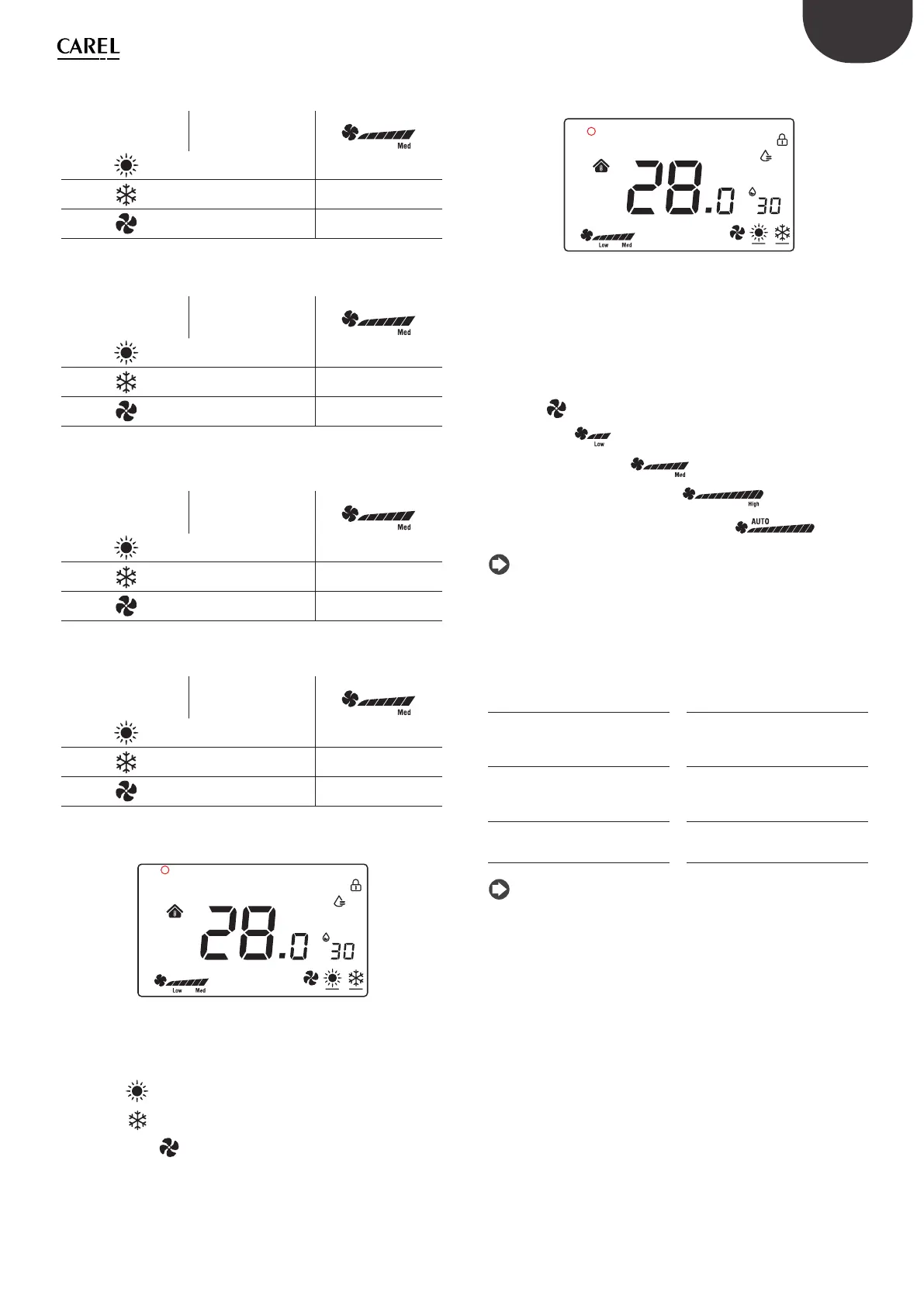 Remarque: en mode ventilation, la vitesse du ventilateur n’a aucune