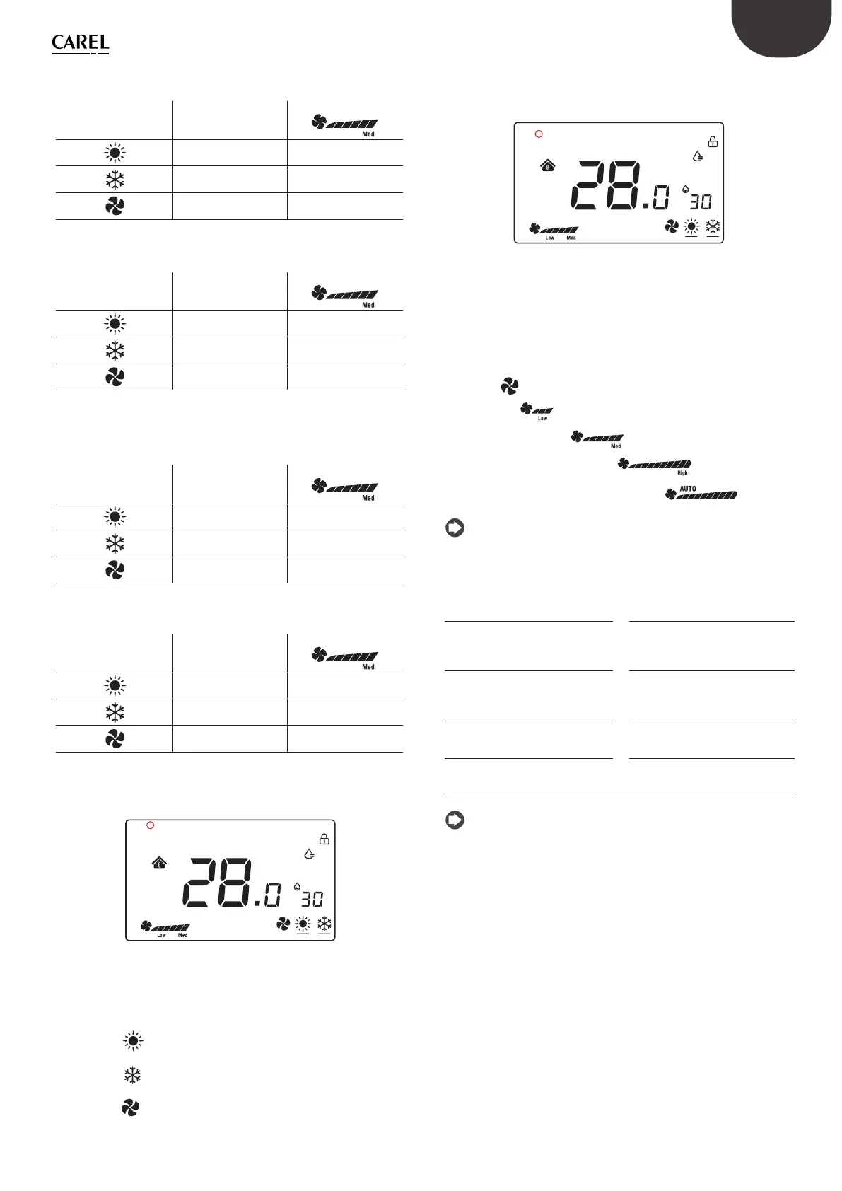 Hinweis: Im Lüftungsbetrieb ist die Ventilatorgeschwindigkeit