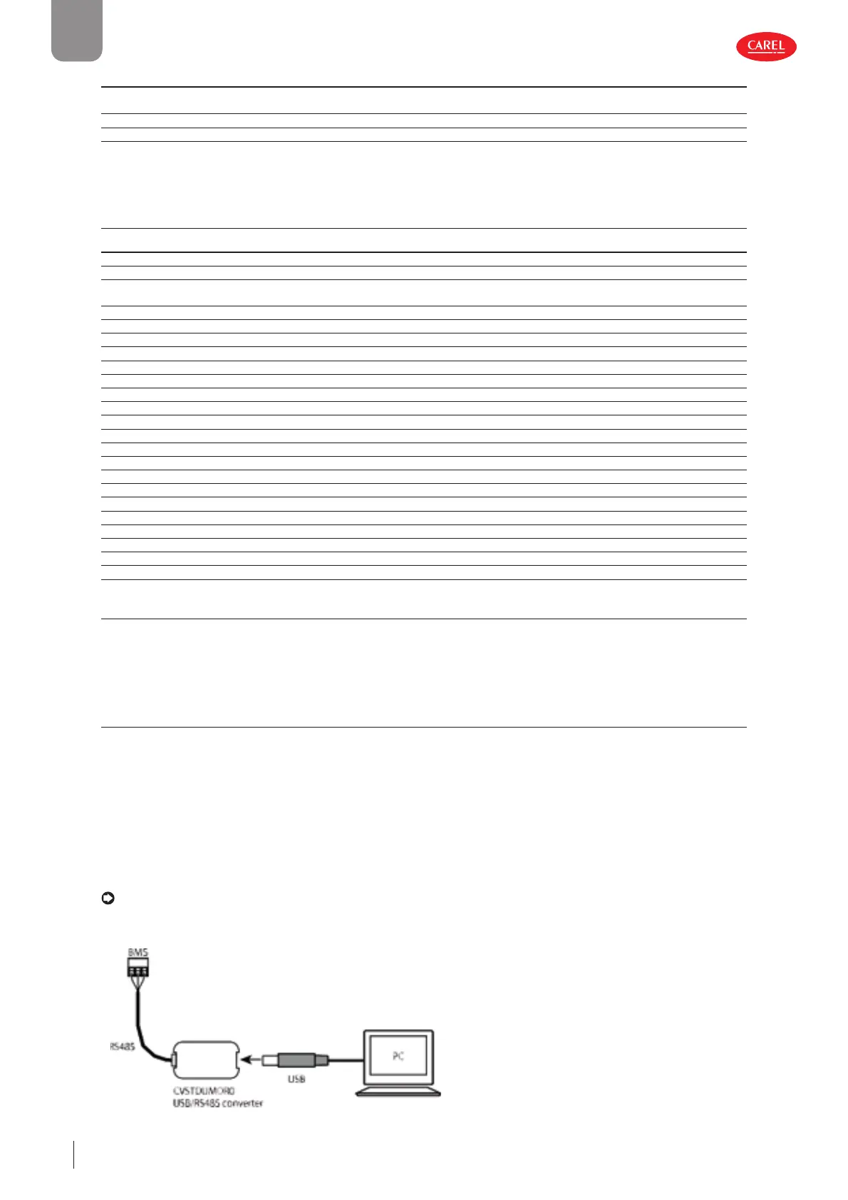 • For the physical connection to the BMS port on Chiller, use the USB/RS485 converter P/N CVSTDUMOR0