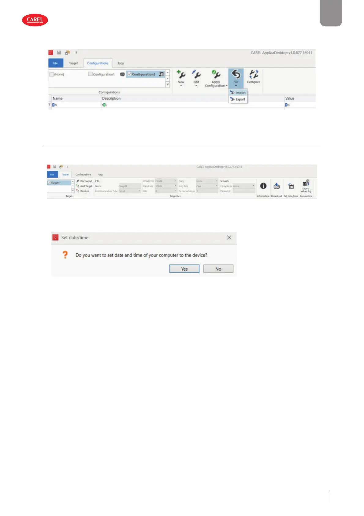 Applica Desktop can set the date and time on Chiller in just one simple step, copying the values from the PC to the controller.