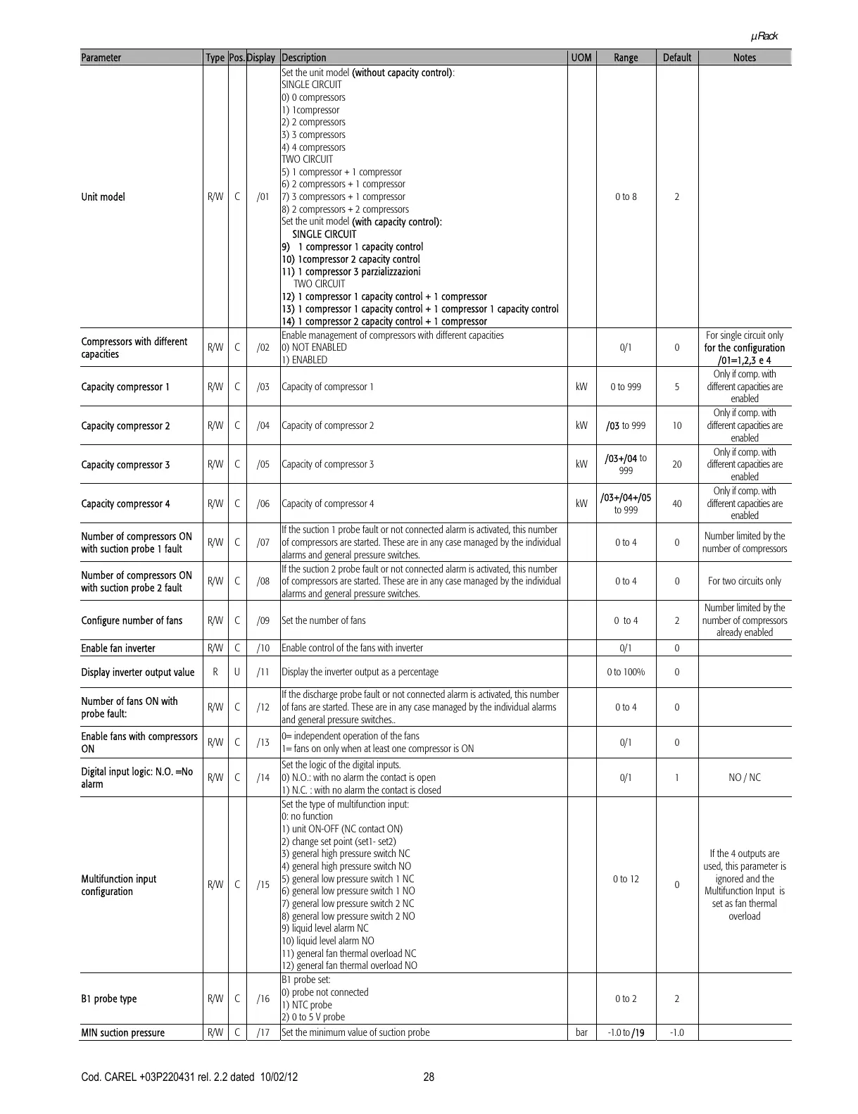 Cod. CAREL +03P220431 rel. 2.2 dated 10/02/12