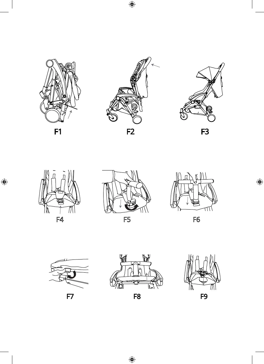avaa istuinsuojus (kuva F4), aseta paikalleen turvakaaren painikkeen takaosa (kuva F5), aseta