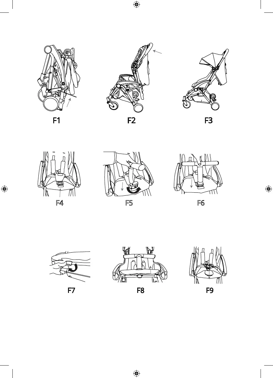 Se F1, løs ut den låste foldehendelen; Hold håndtaksgrepet med en hånd, trekk opp til trillen er