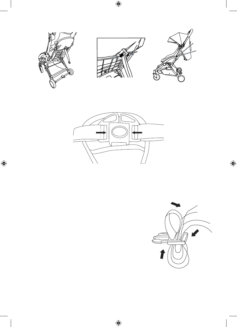 justerer ryggstøtten med stroppen. Ryggstøtten kan justeres mellom 105 og 155 grader.