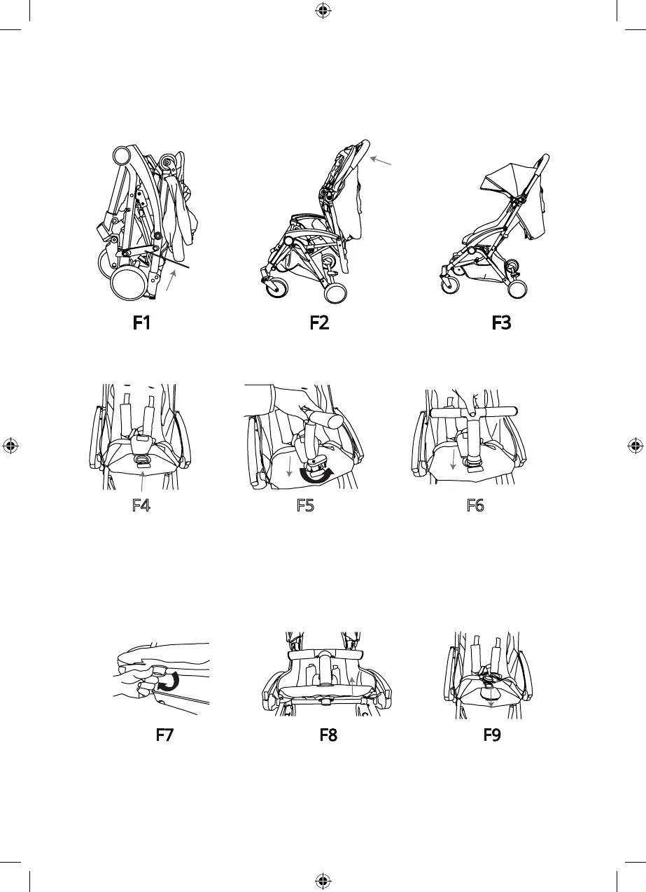 se F1 – udløs sammenklapningslåsen, hold i styret med en hånd og træk vognen opad til den er
