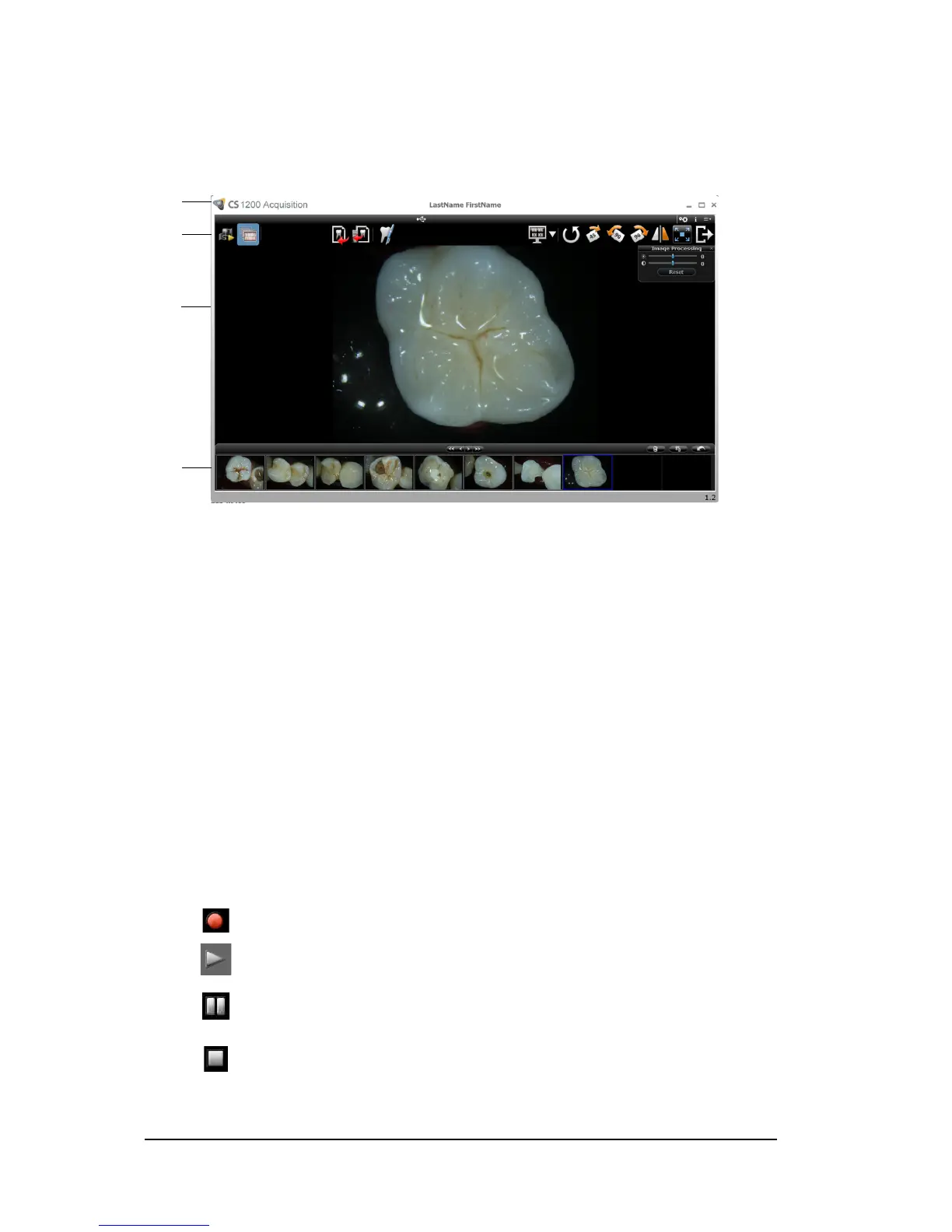 The CS 1200 Acquisition interface can acquire, review, and store videos and images of the oral cavity.