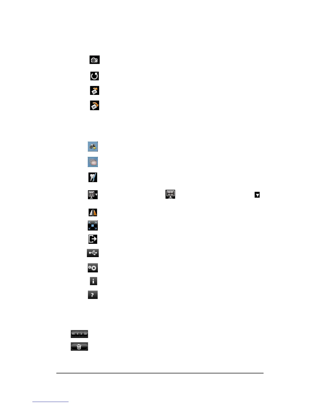 The image gallery toolbar enables you to manage videos and images displayed in the image gallery.