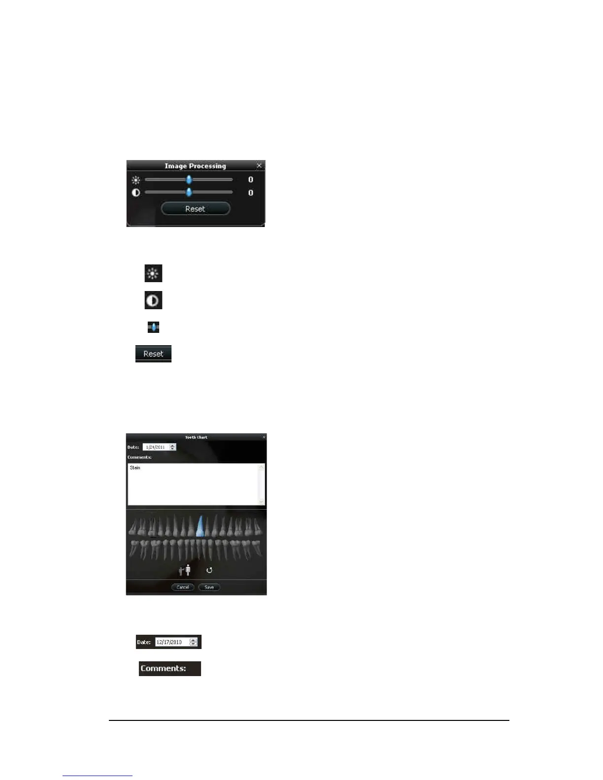 The image processing dialog box enables you to manage the image contrast and brightness.