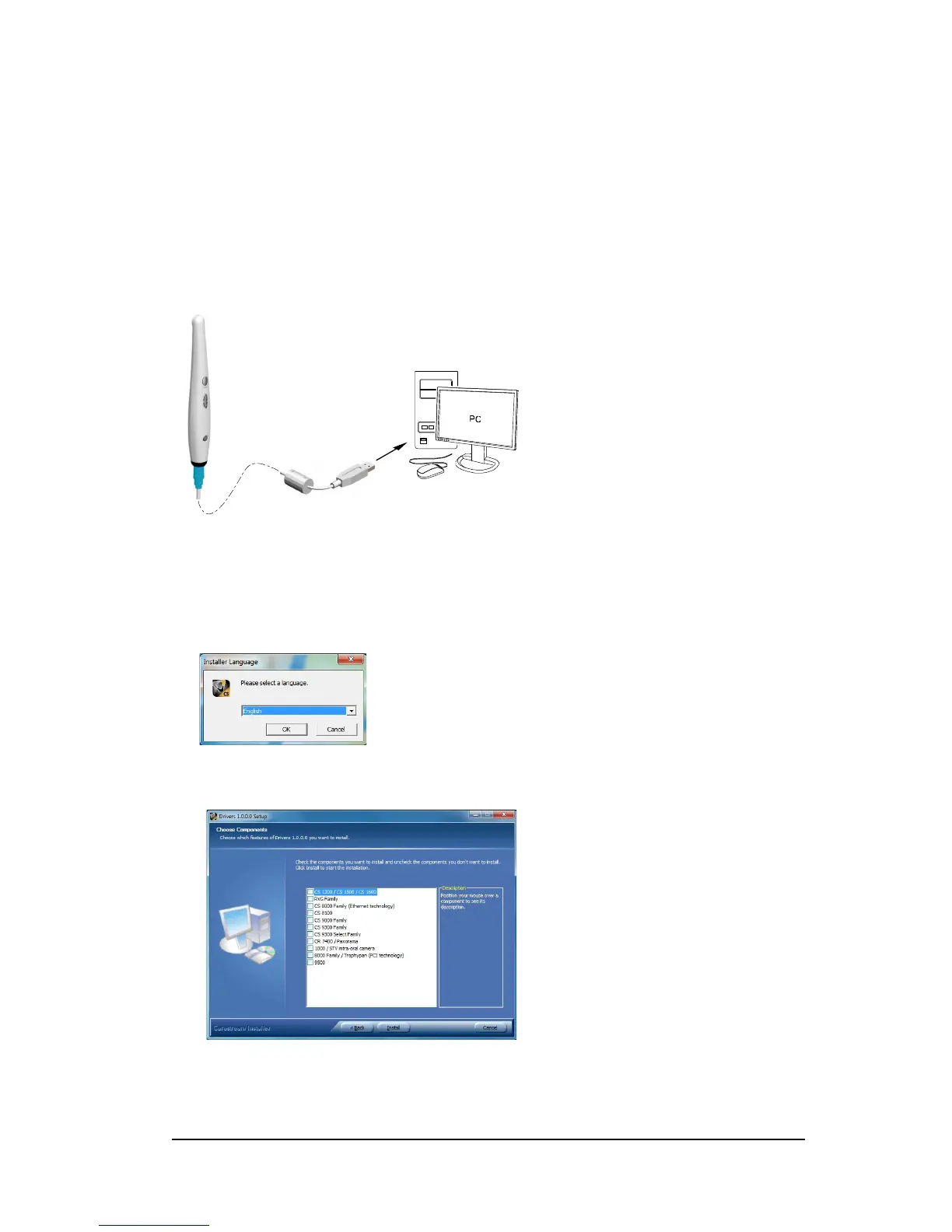 3 Insert the Drivers DVD to install the Intraoral Camera driver. The Choose Setup Language dialog