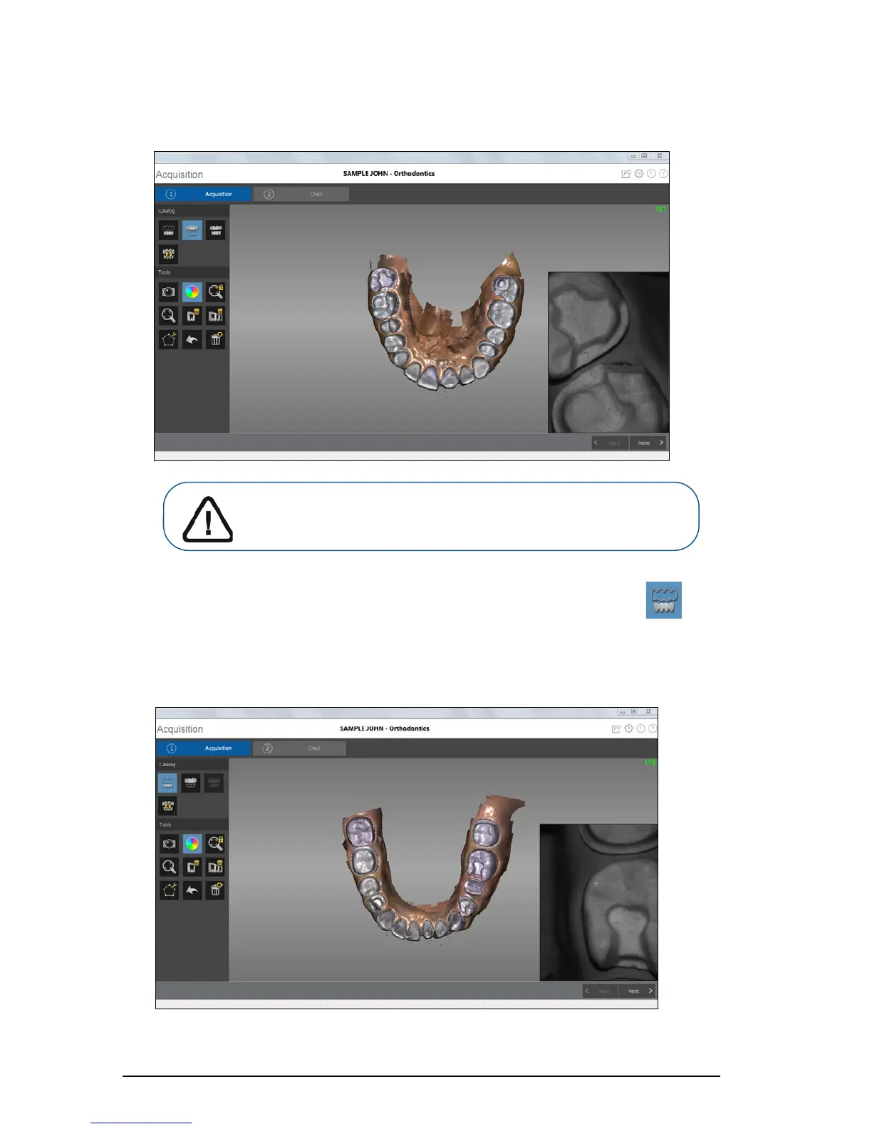 9 Once the upper jaw has been scanned, you can begin scanning the lower jaw. Click and