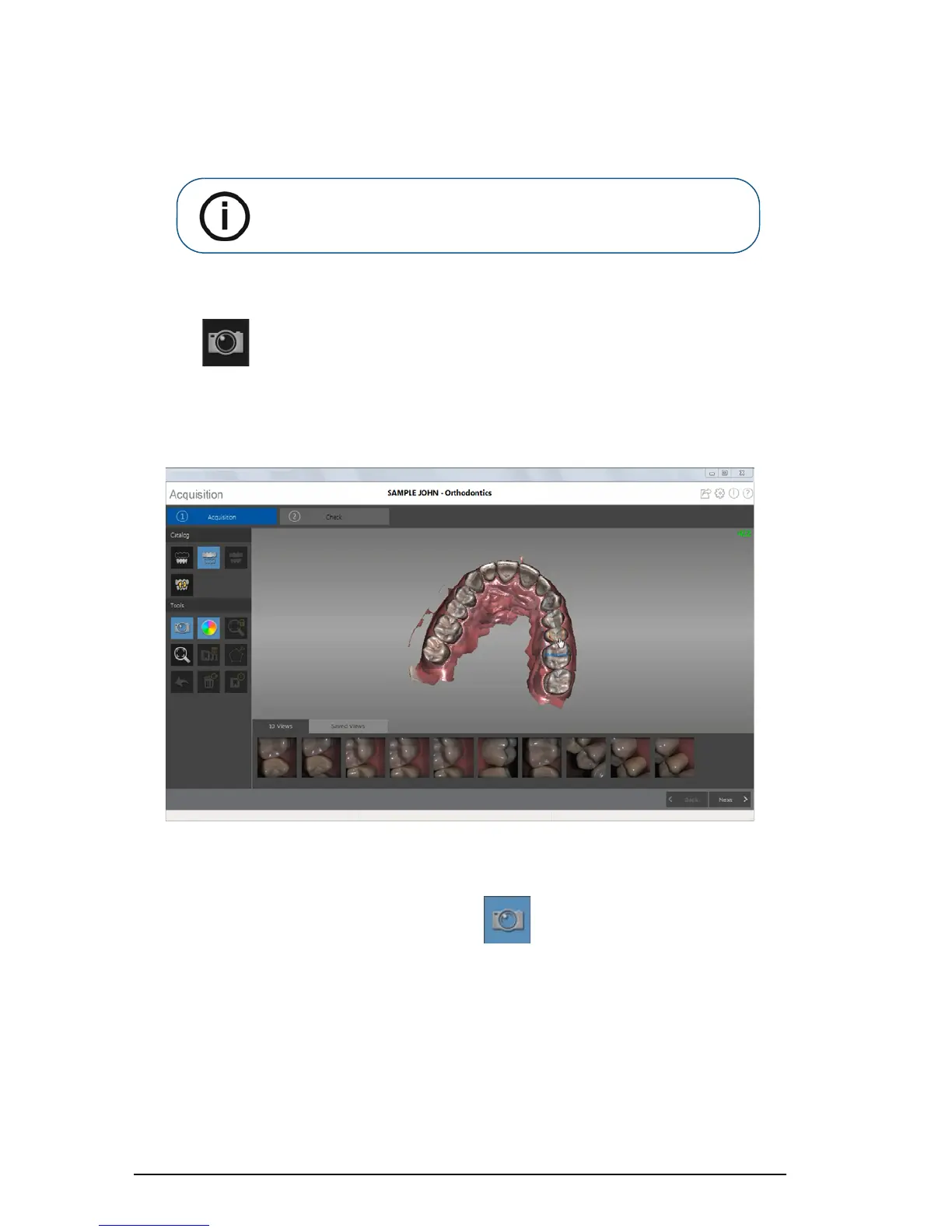 You can select 2D images from the 3D model to send to the dental lab along with the 3D model.