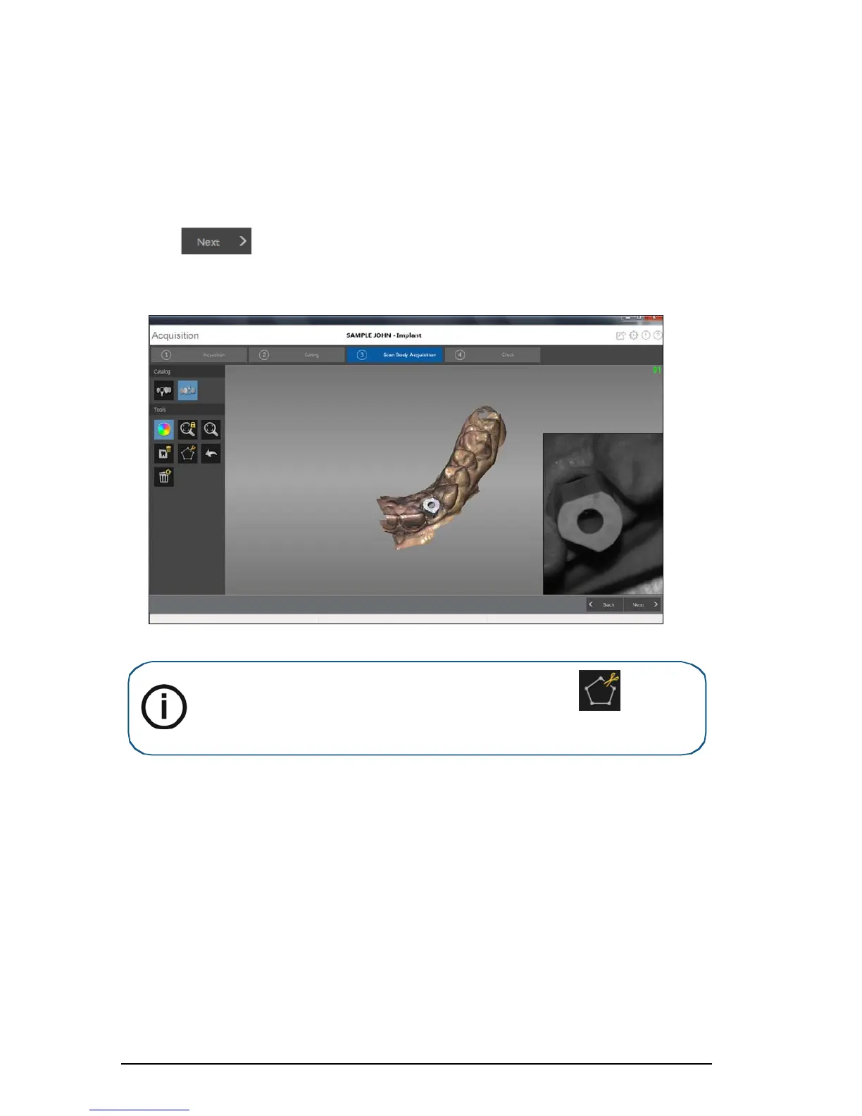 Note: If there is excessive soft tissue around the scan body, click to remove it