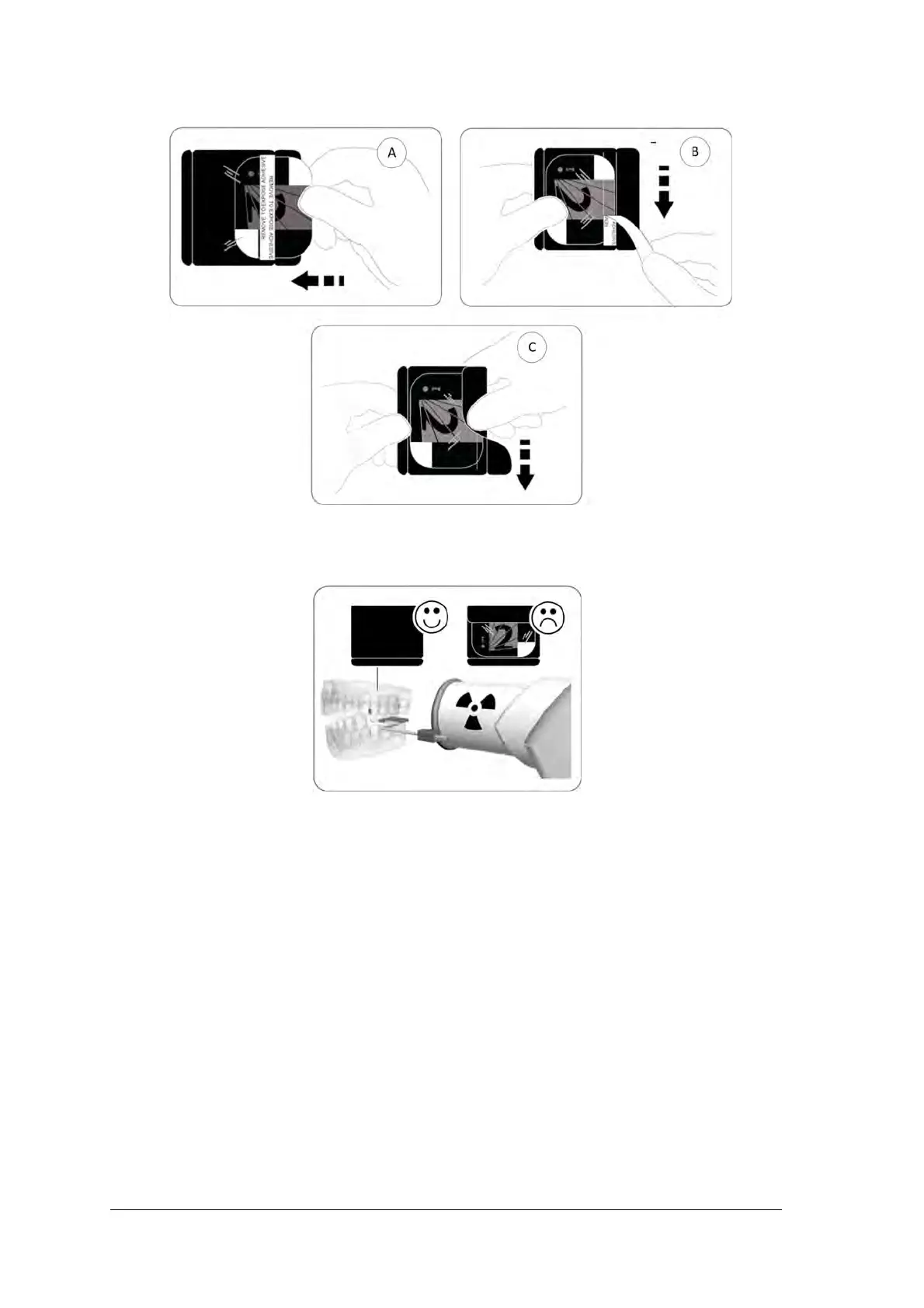 4 Handle the imaging plate by holding the hygienic sheath’s empty edge where the silicone strip is.