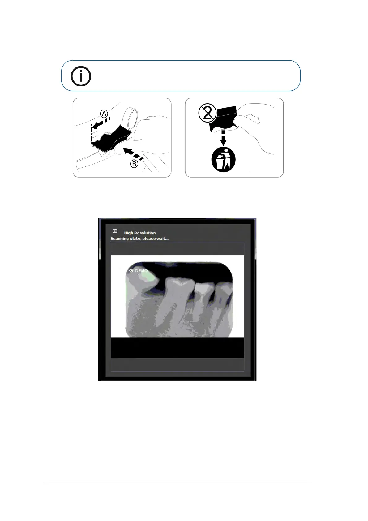 When the scan is complete, the imaging plate is erased and then ejected. The indication LED stops