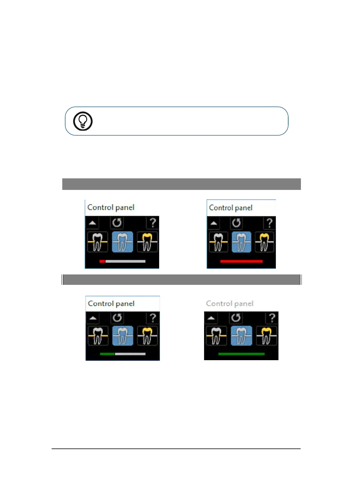 The ideal image quality is when the indicator of the quality of exposure is a full green bar in the Control