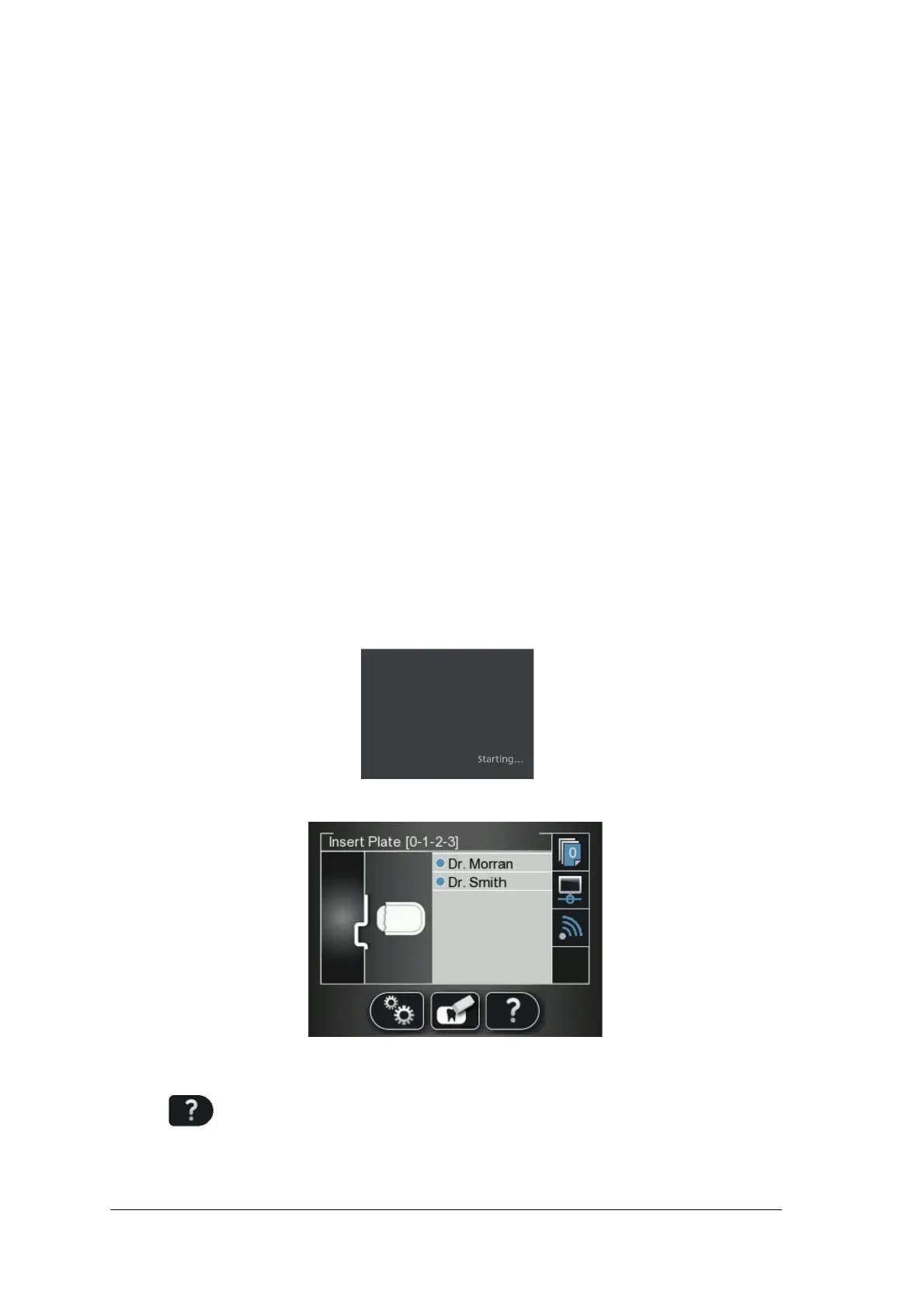 After turning on the scanner, you are presented with the Starting screen.