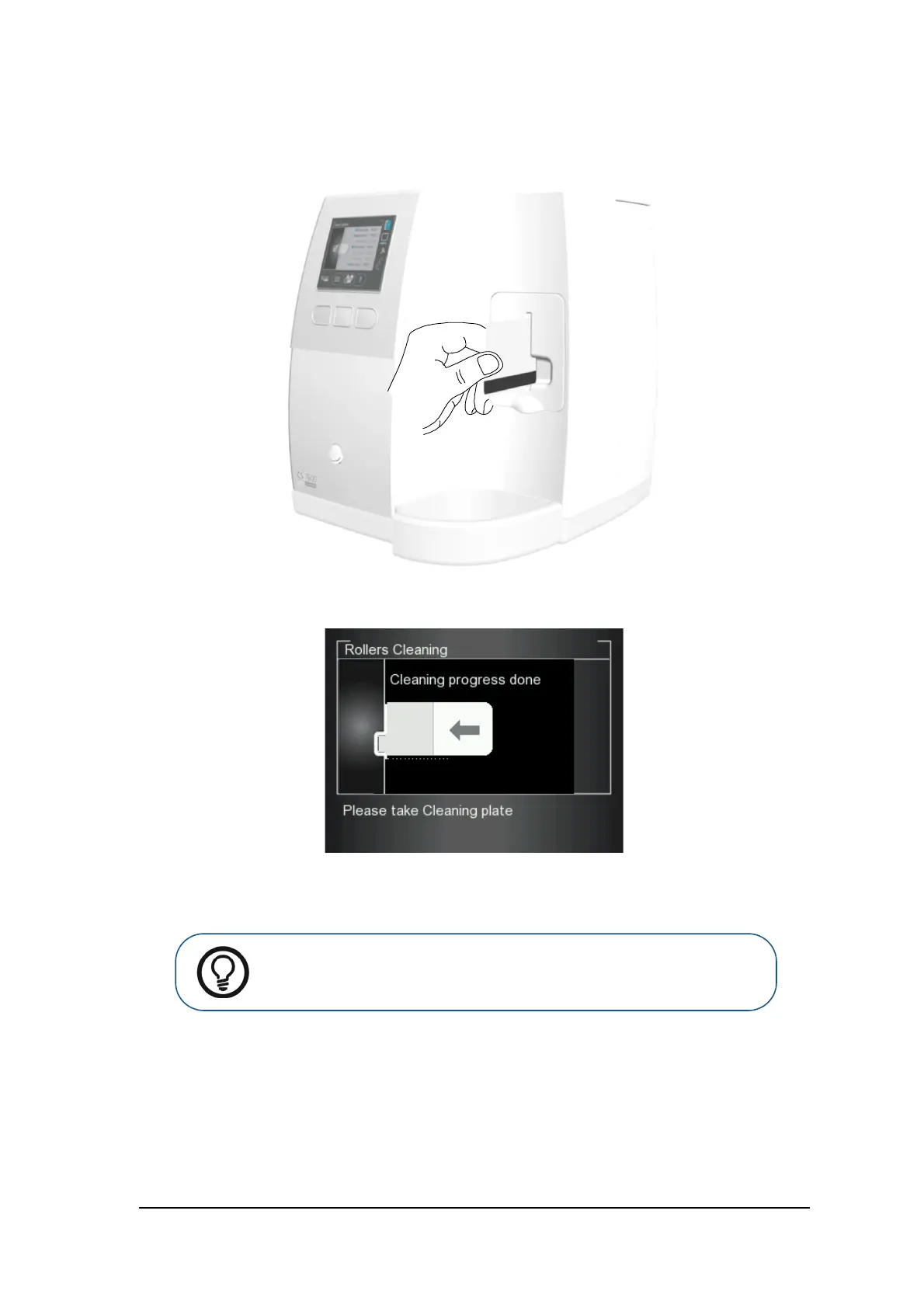 Tip: The cleaning procedure is to be repeated 3 times to ensure the rollers are