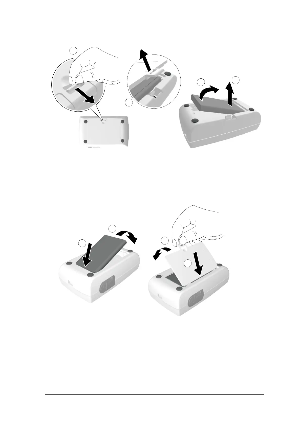 3 Extract the battery as shown in the figure above (C, D) using the removal depression to lift the battery