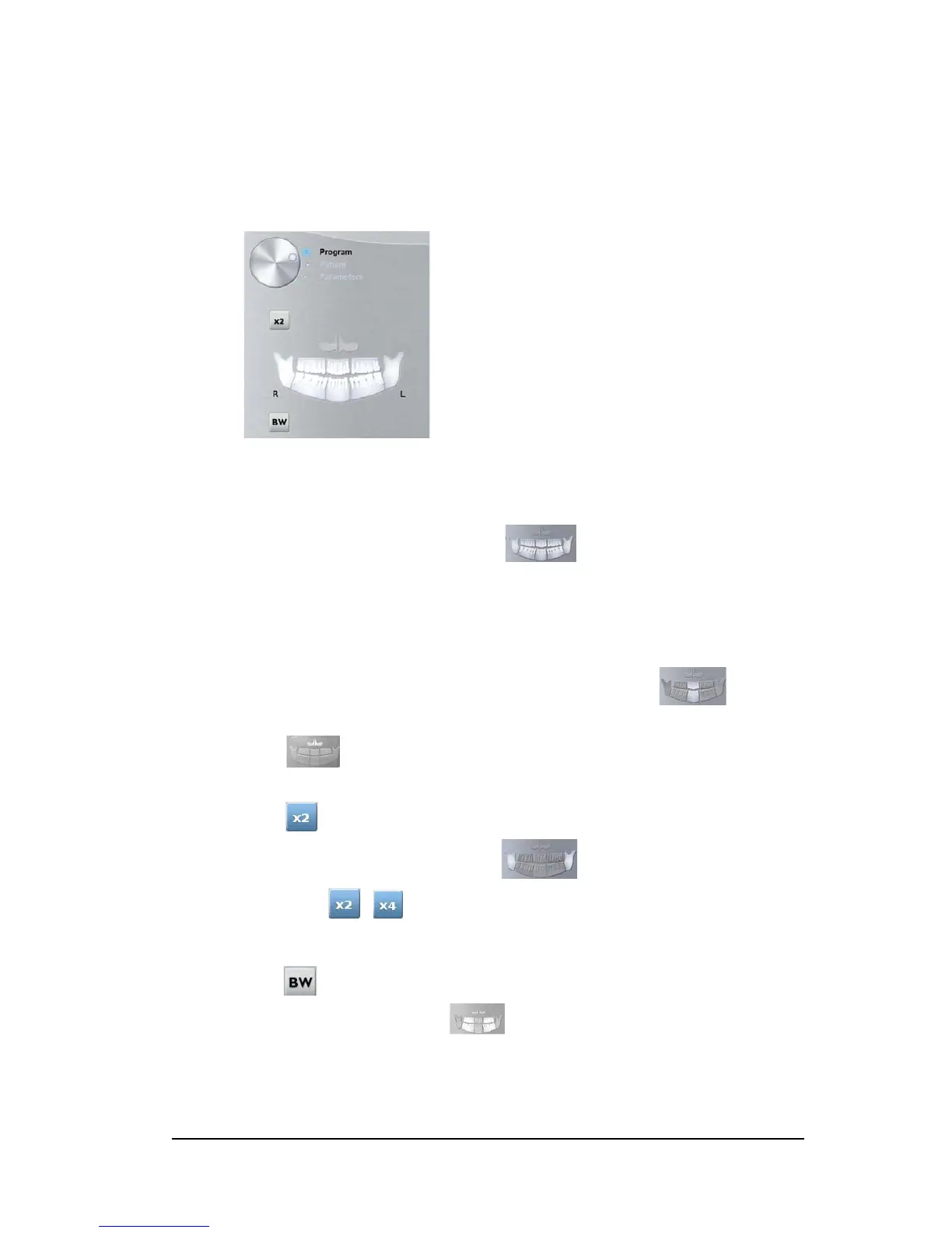The Program pane enables you to choose the different radiological exams. The diagram in