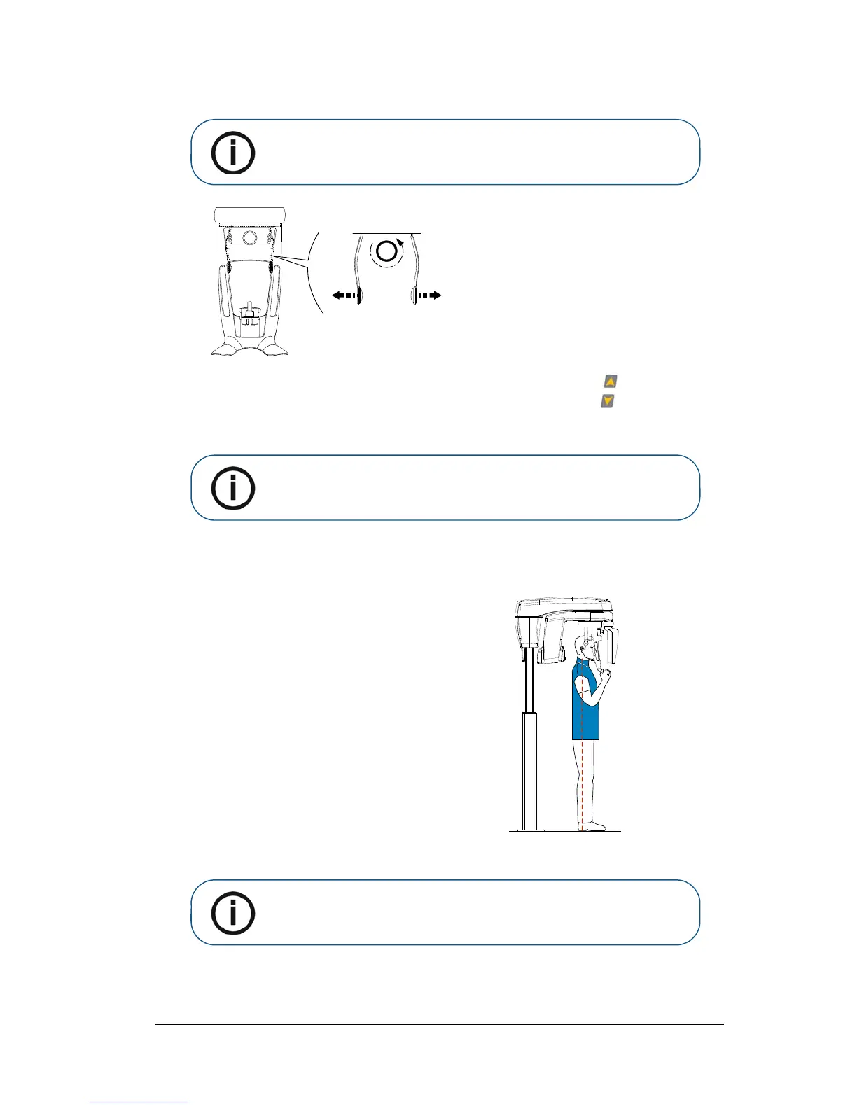 4. Ask the patient to enter the unit. On the Positioning panel, press and hold to raise the chin