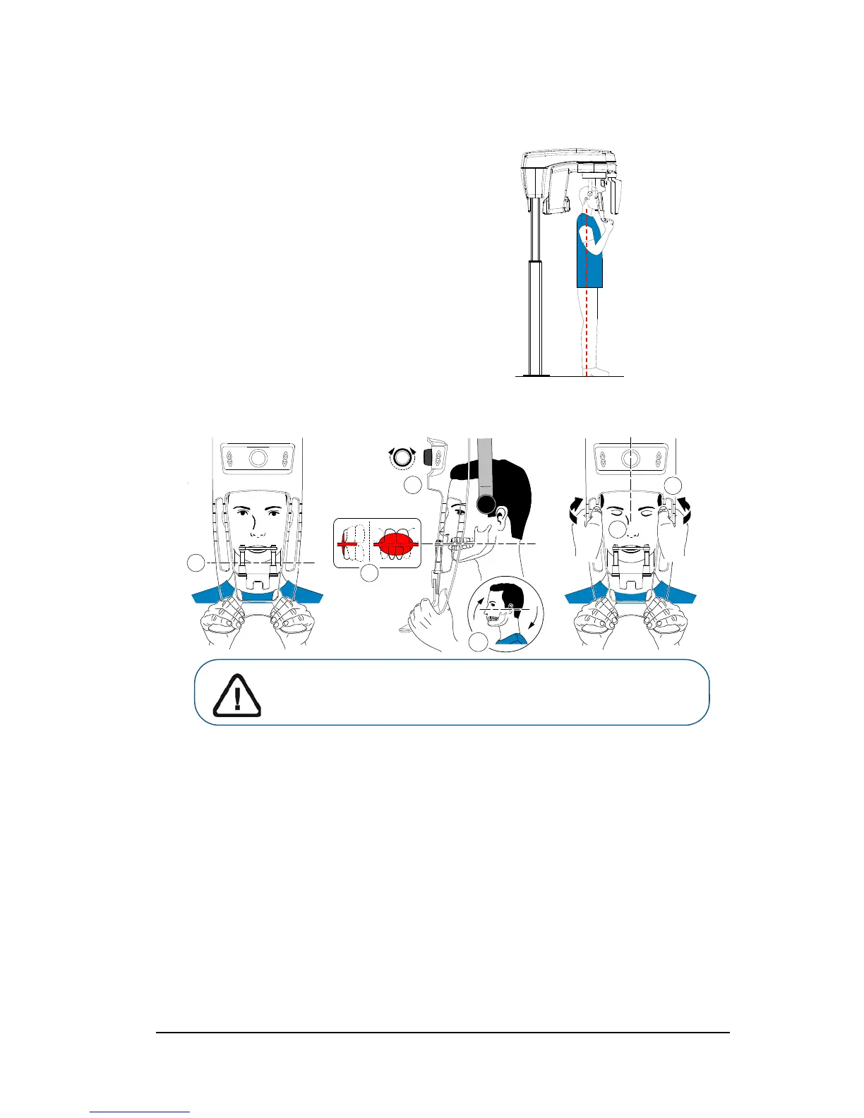 8. Use both hands to align the vertical position of the head (D). Ensure that the patient occlusion is