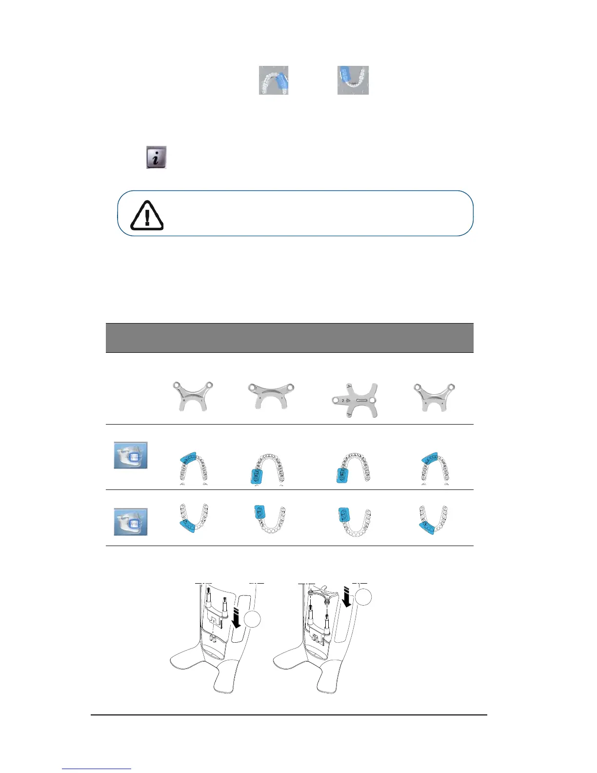 5. Position and fix the bite block support (A), and insert the appropriate 3D bite block (B).