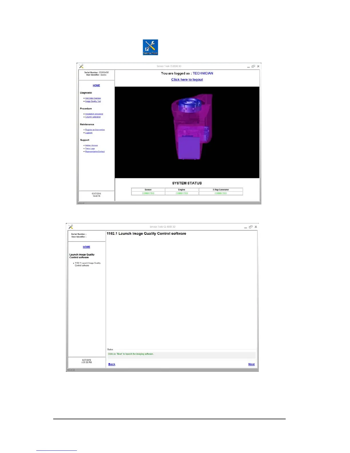 1. On your desktop, double-click . The CS 8100 3D Technician Tools window is