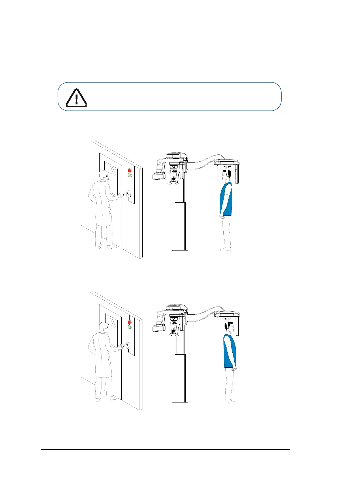 1. Leave the X-ray room and close the door. You must keep visual contact with the patient during