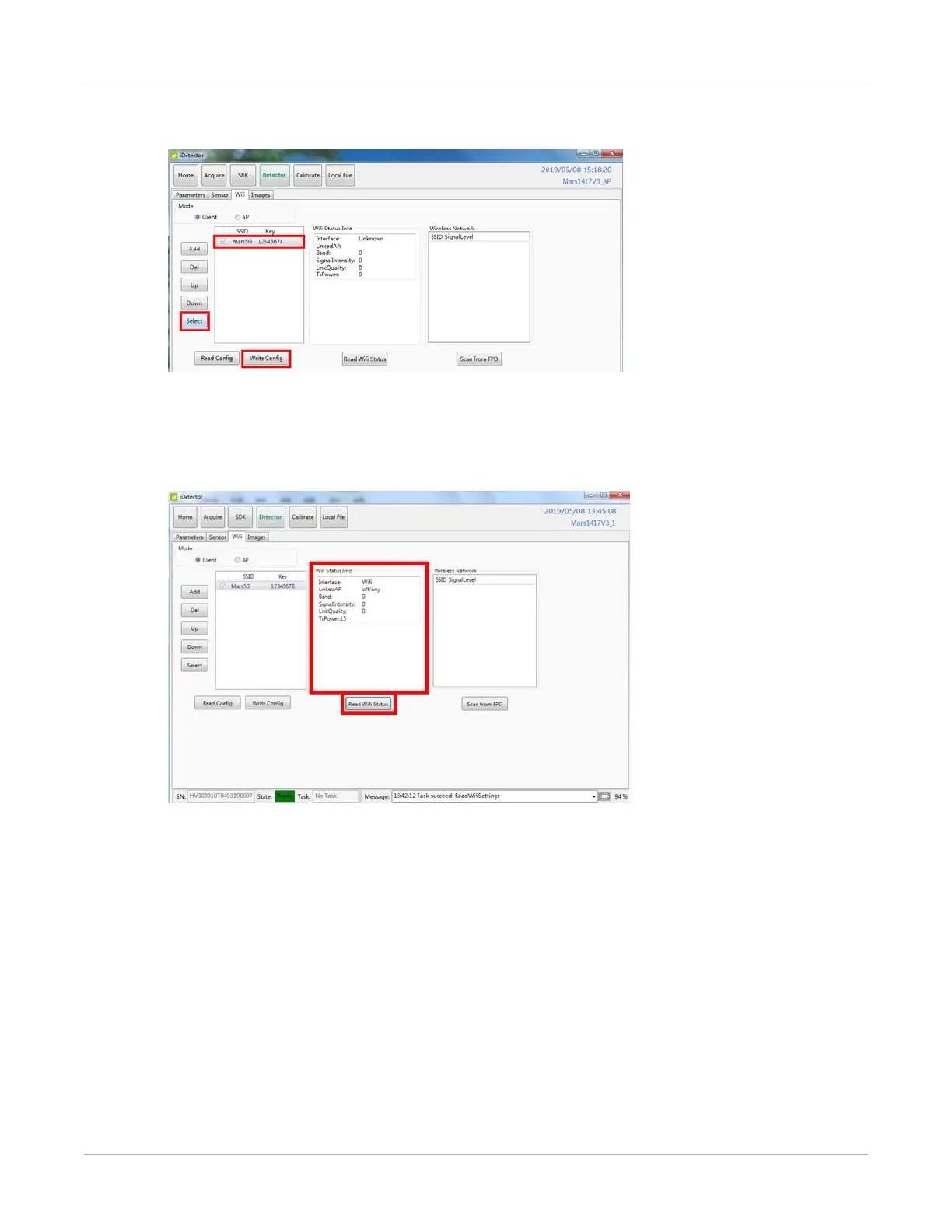 b. Select Read Wifi Status to check wireless transmission status, numerical value