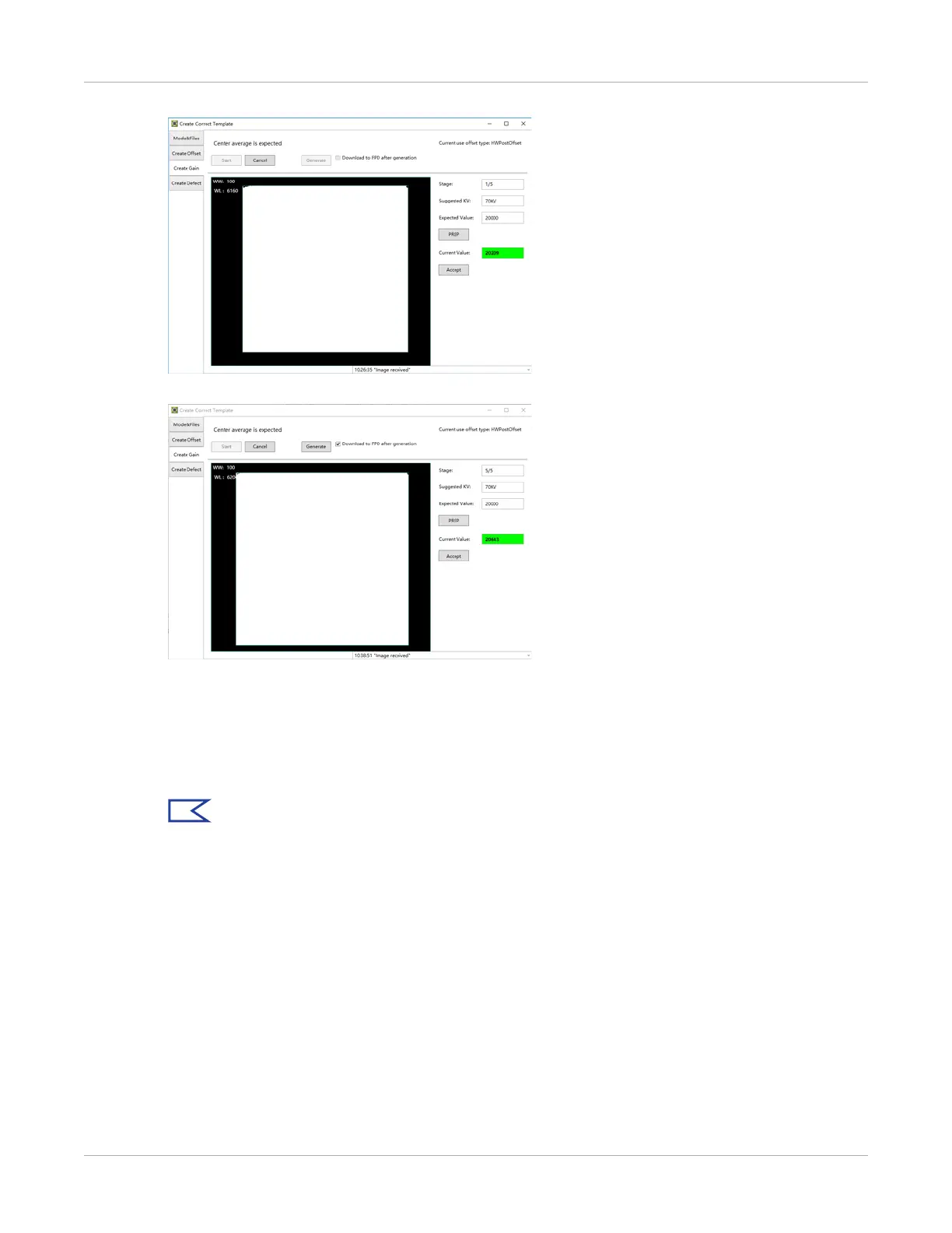 6. When all five images are created, select Generate to generate the gain template.