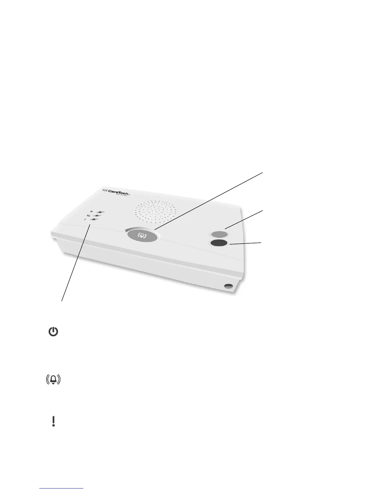 Steady light: Indicates mains power, receipt of radio signals on programming radio