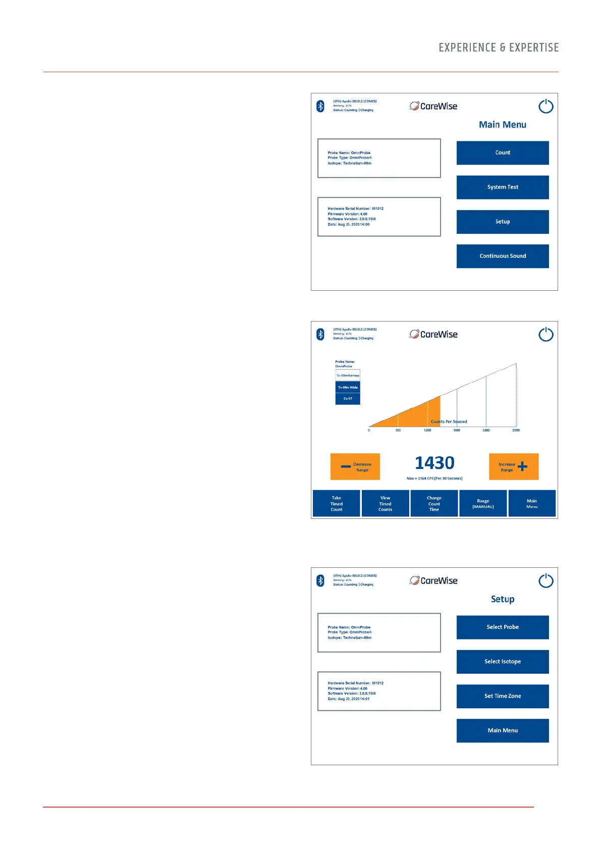 Select Isotope, Set Time Zone, and Main Menu Screens.