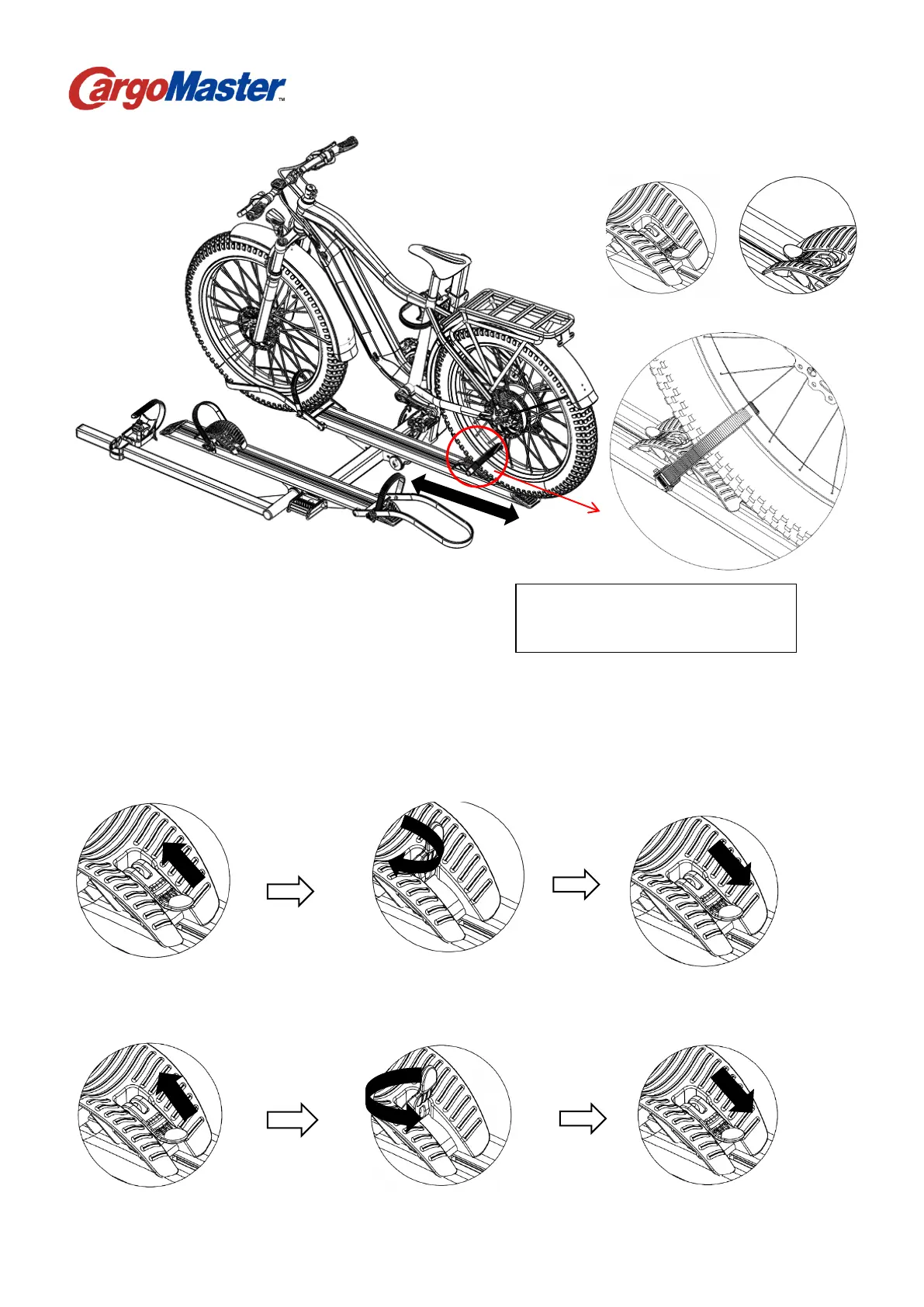 enough apart to support the bicycle tires. To move the cradles, open the cam gear (Step 2B) and slide