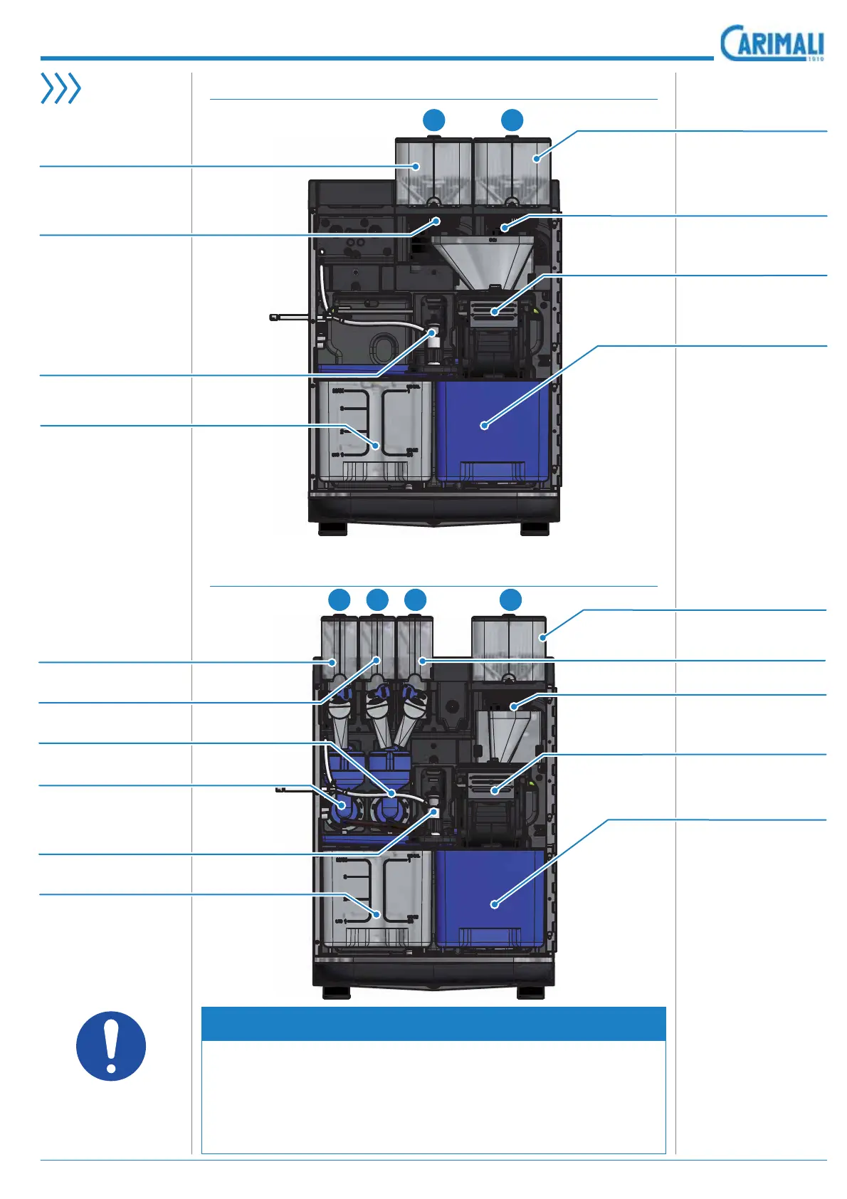 • Machine with instant product containers where the topping is