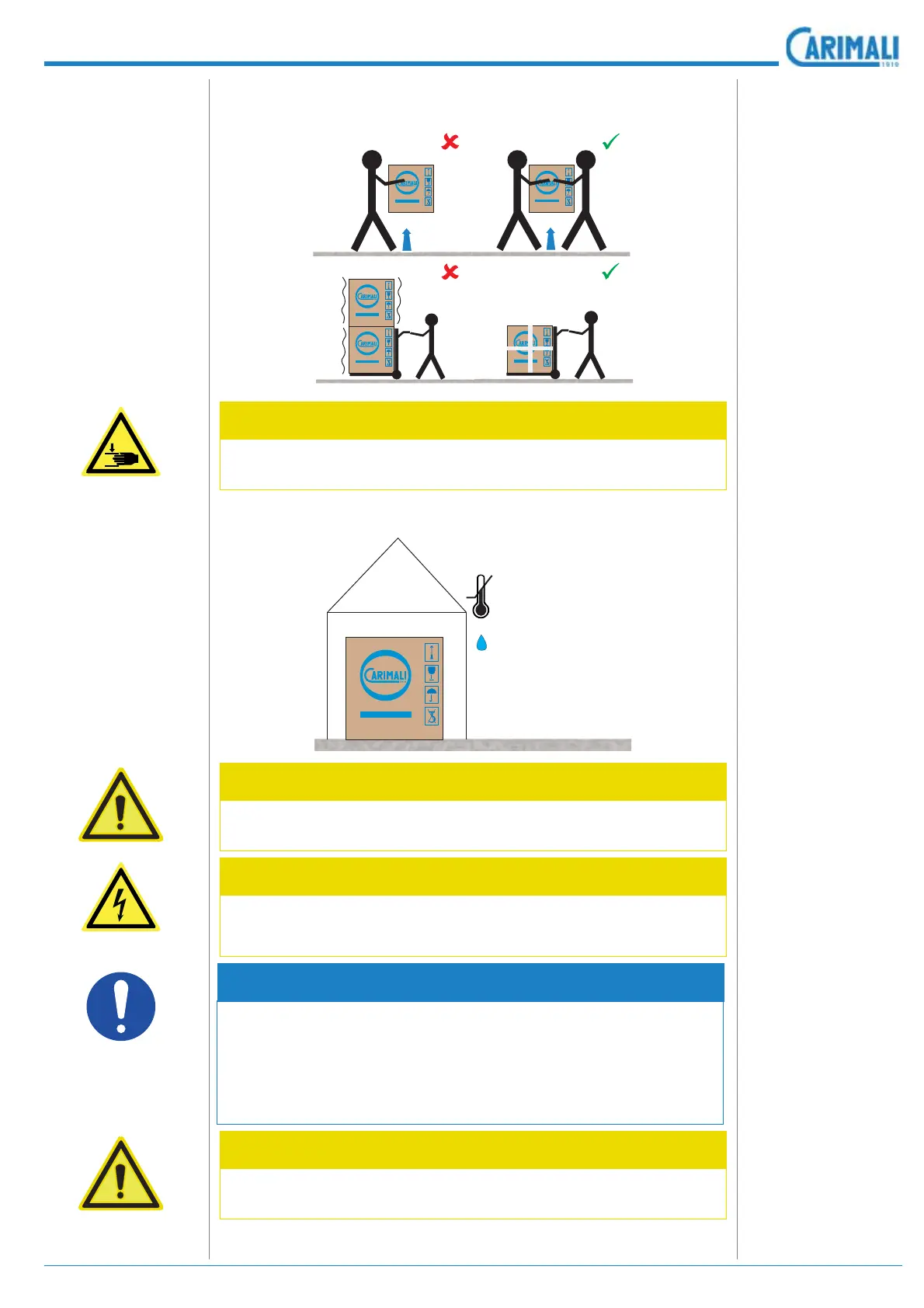 Handle the packaging by means of the apposite carrying handles.