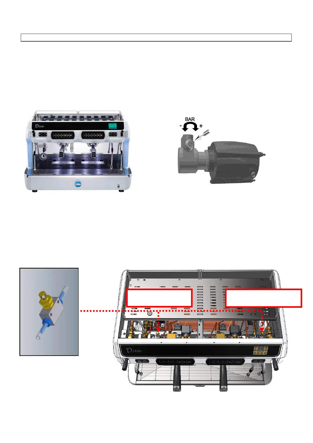 To adjust the pump pressure insert the filter holder filled with properly ground, pressed coffee dose.