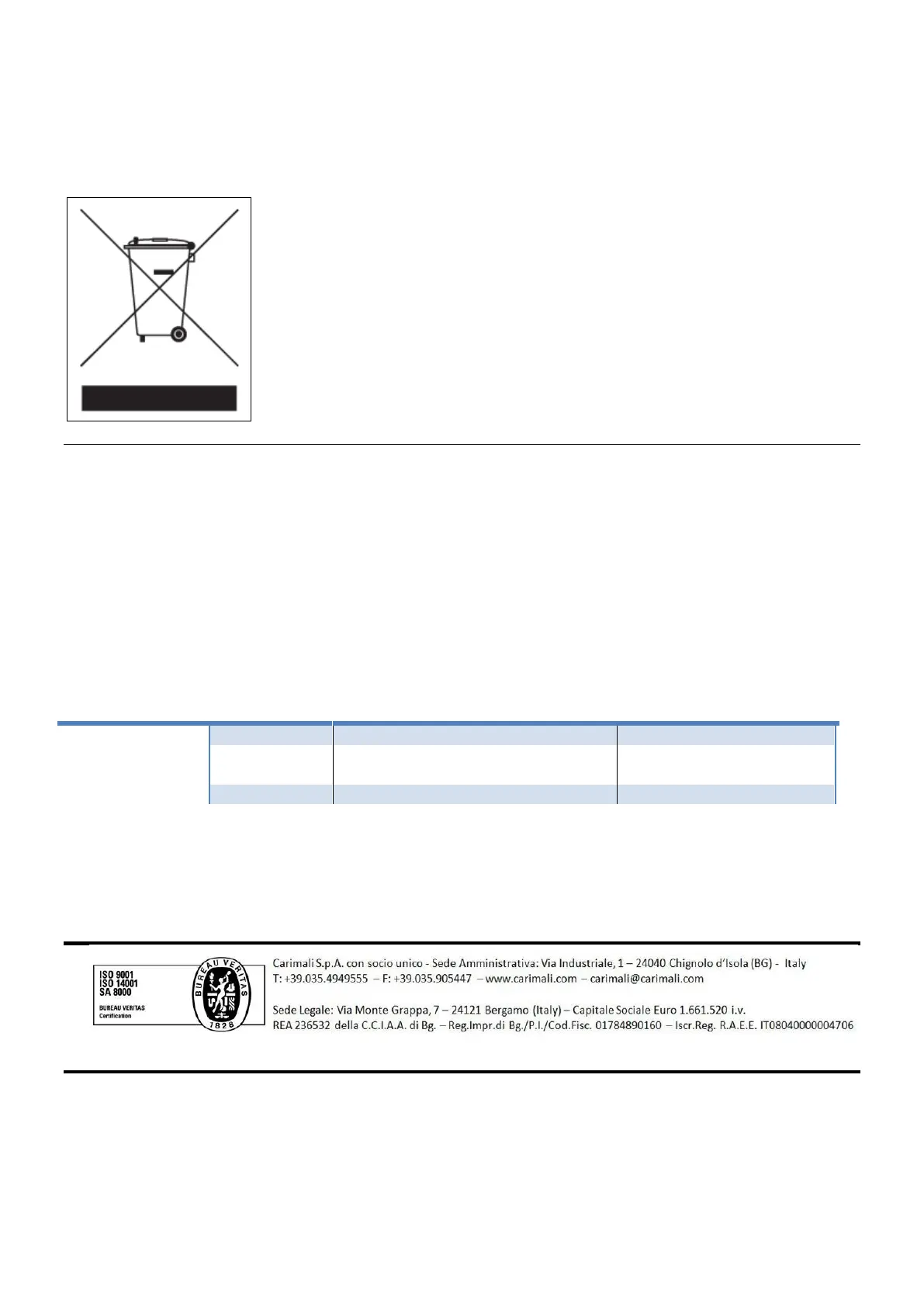 should not be disposed of as unsorted municipal waste. For further information please contact Carimali