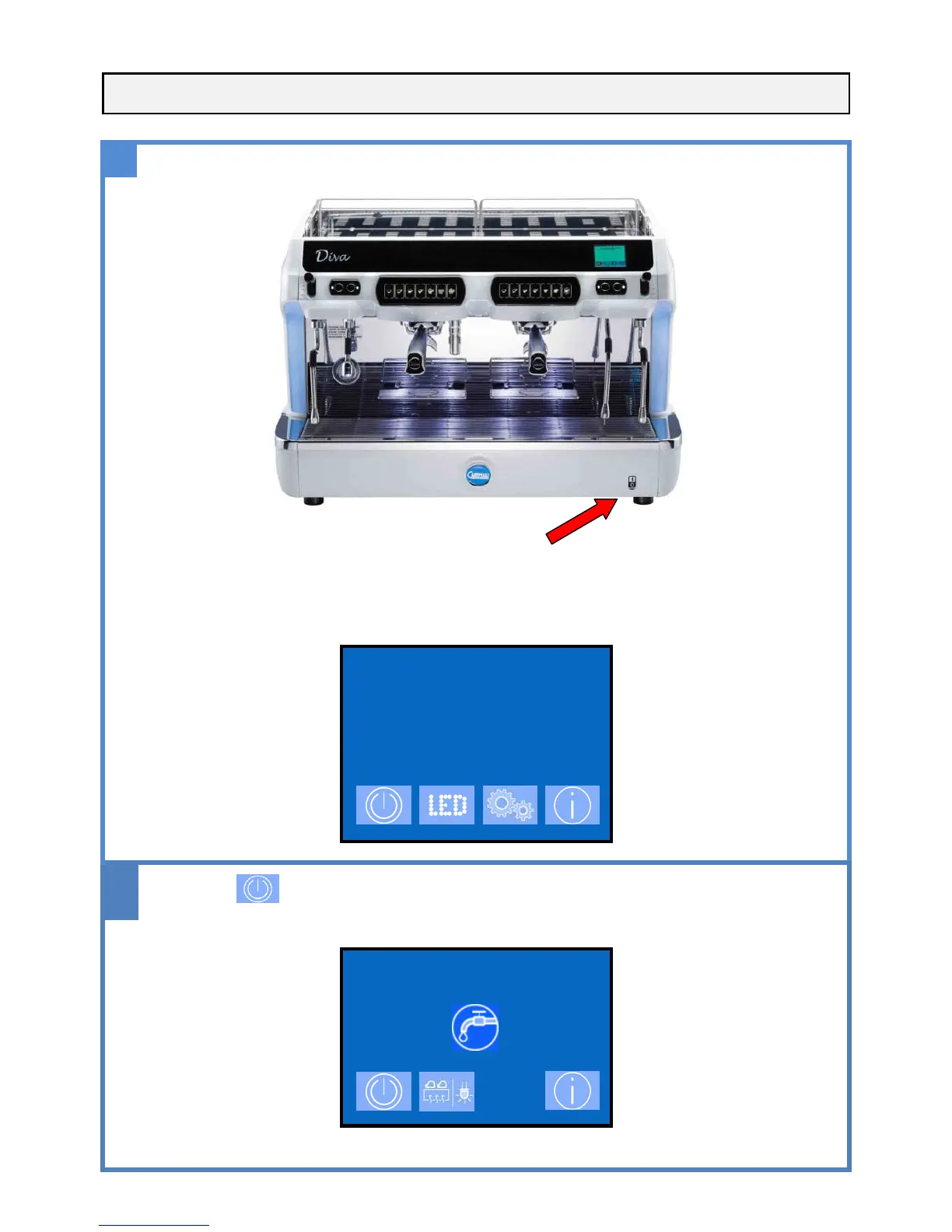 Carimali DIVA - Starting Up the Machine; Initial Power On; Boiler Filling Process