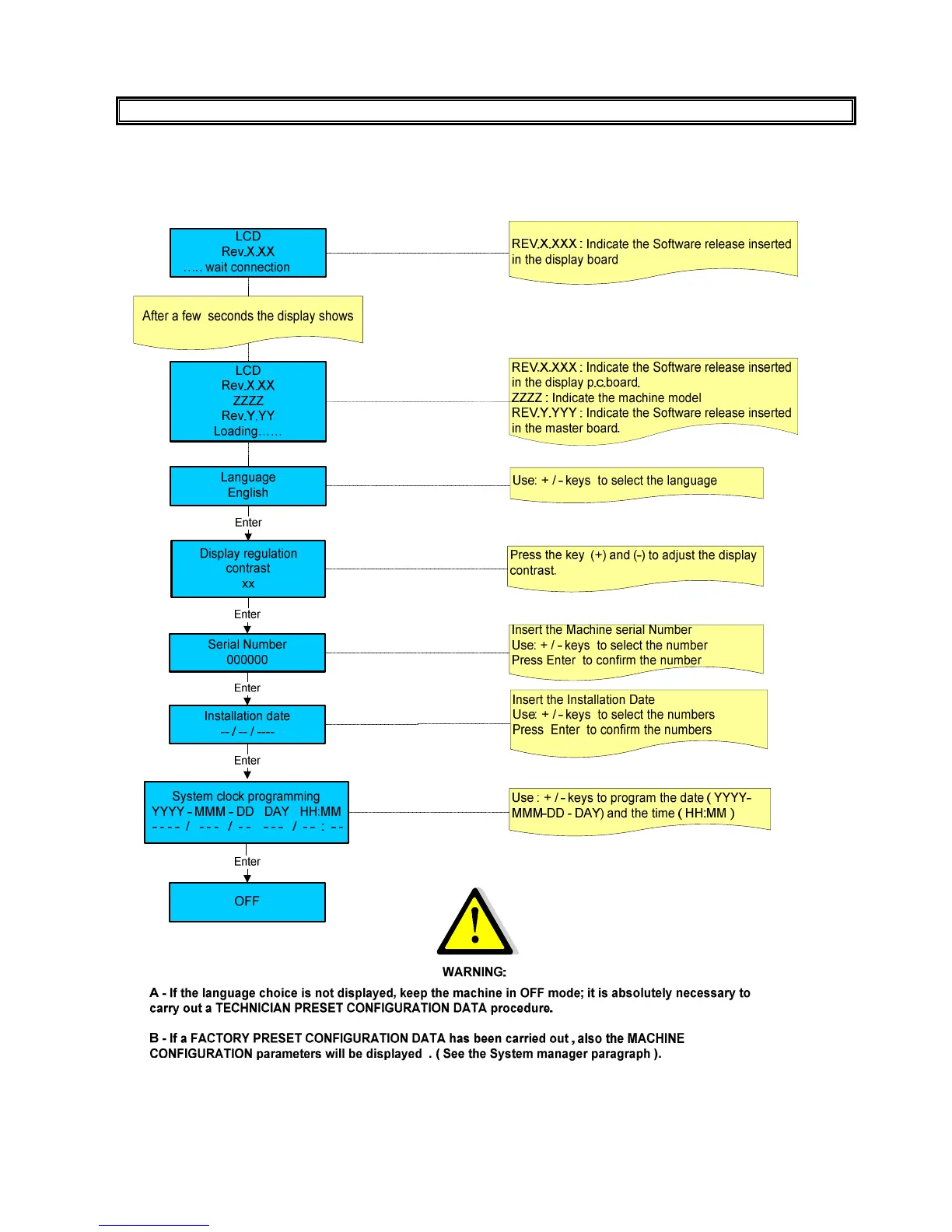 After having connected the machine to the water and electric networks, turn the switch on (see diagram).