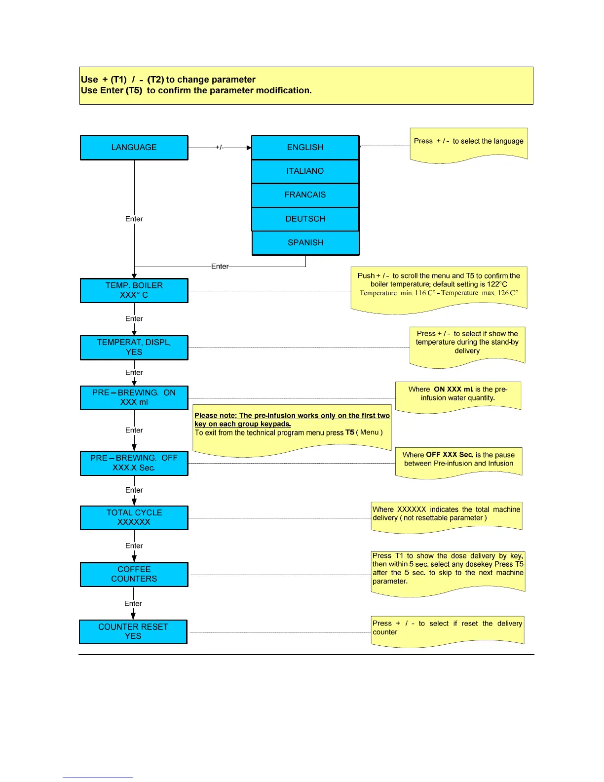 To exit from the technical program menu press T5 ( Menu )