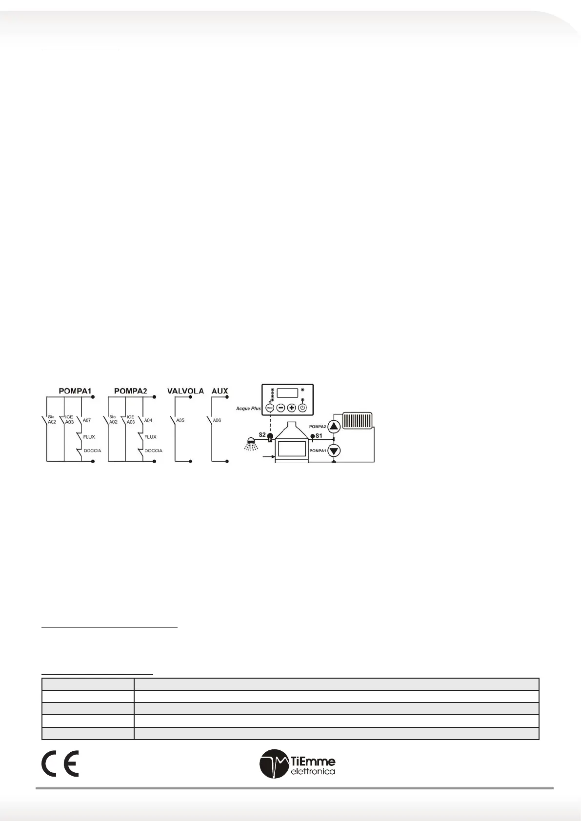 PUMP1/PUMP2/VALVE output: 230 Vac power supplied max flow rate 5A 250 Vac
