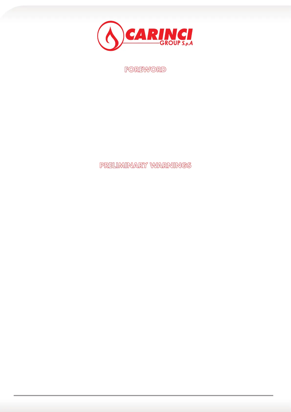 Dear Customer, Carinci Group S.p.A. thanks you for having chosen the Innovative Thermo Fireplace