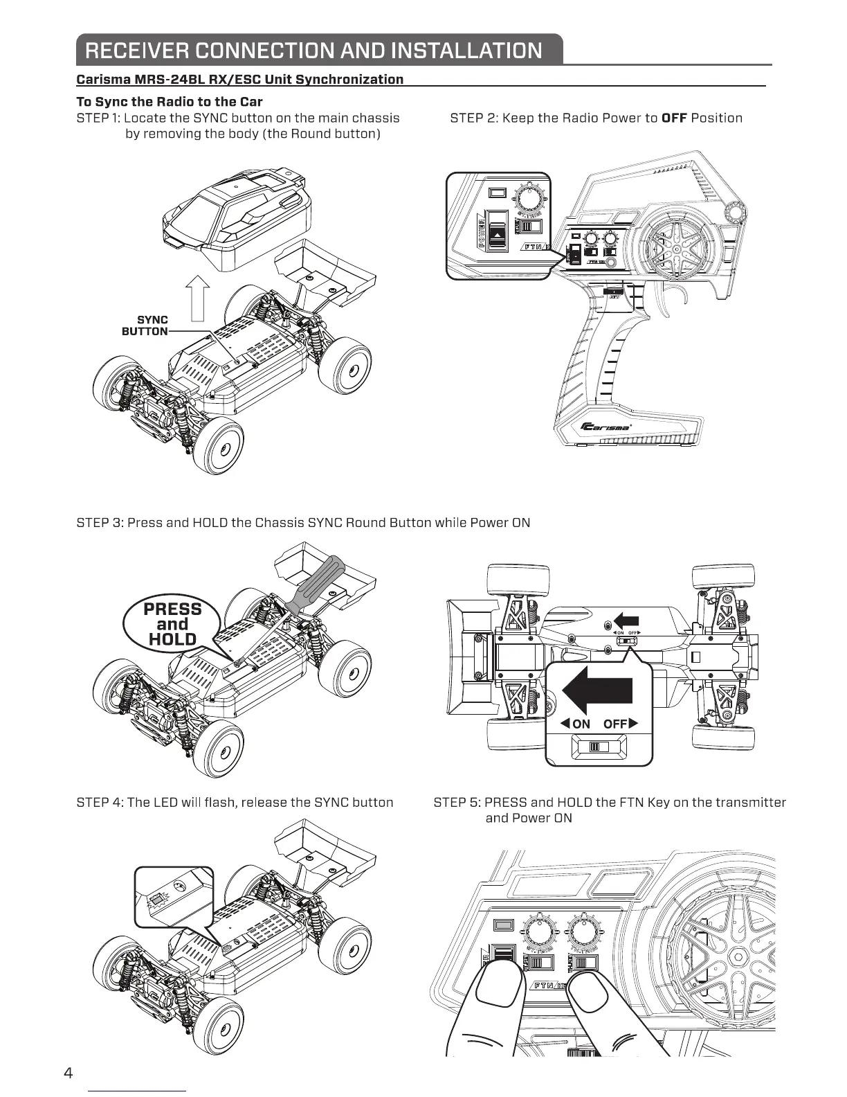 Carisma GT24B - Receiver Connection and Installation; Synchronizing Radio to Car